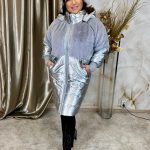 Elegáns ezüst szőrme betétes télikabát