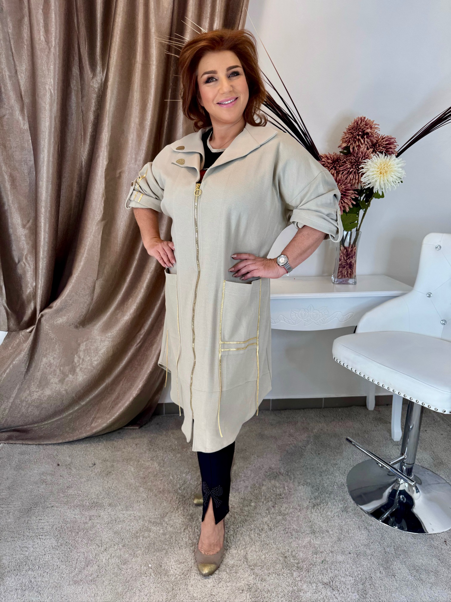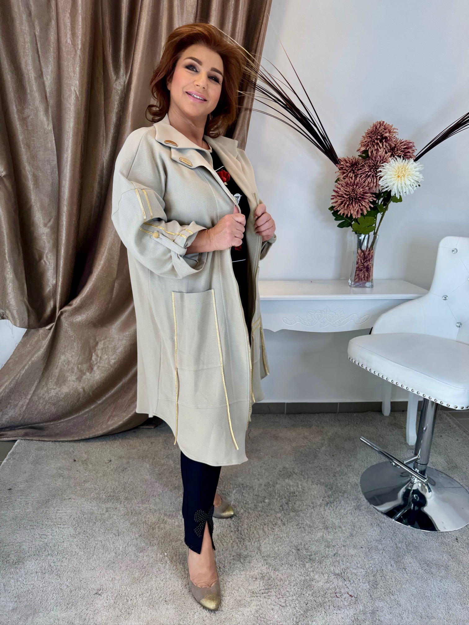 2025.03.23.Elegáns hosszú bézs átmeneti kabát