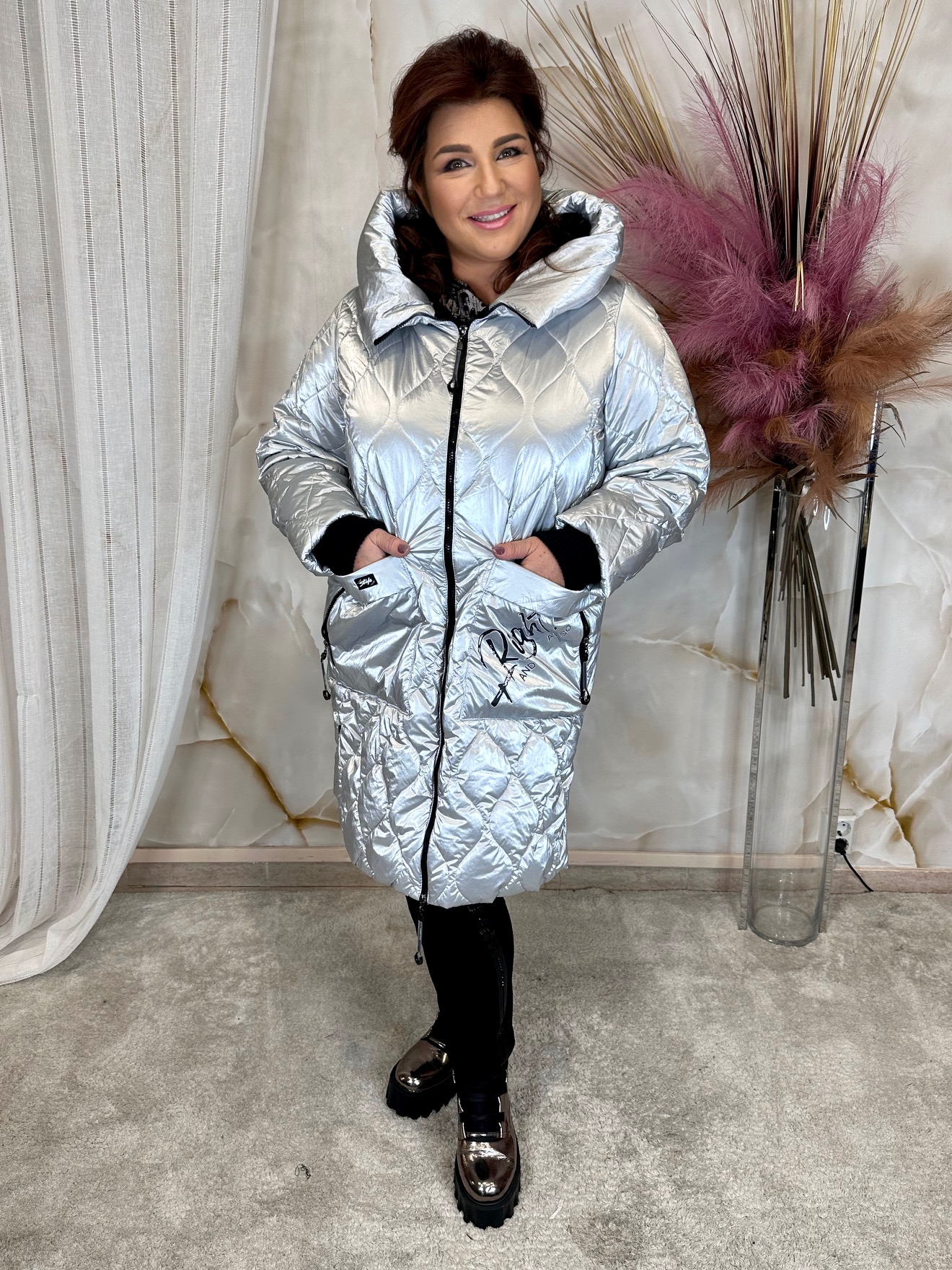 Ezüst magas nyakú steppelt, bélelt télikabát