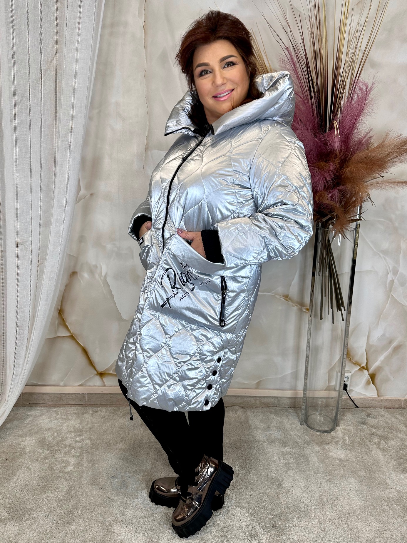 2024.10.10.Ezüst magas nyakú steppelt télikabát