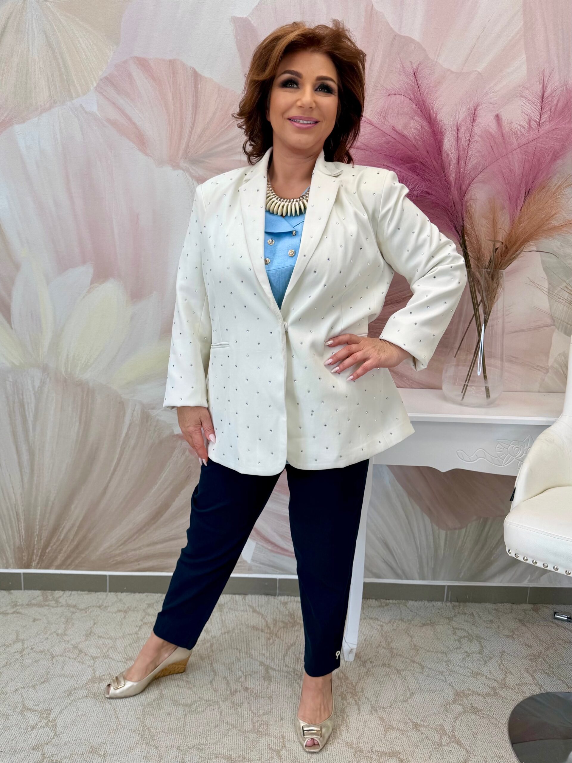 2026.04.02.Fehér blézer ezüst kristályokkal