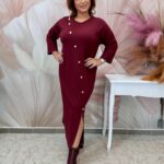 Csinos burgundi pamut ruha arany gomb díszekkel