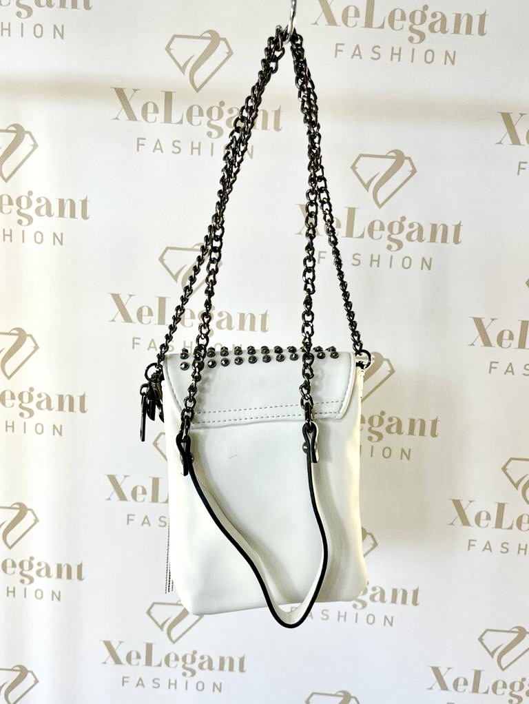 2022.09.28.Fehér kistáska szegecsekkel, fém rojtokkal