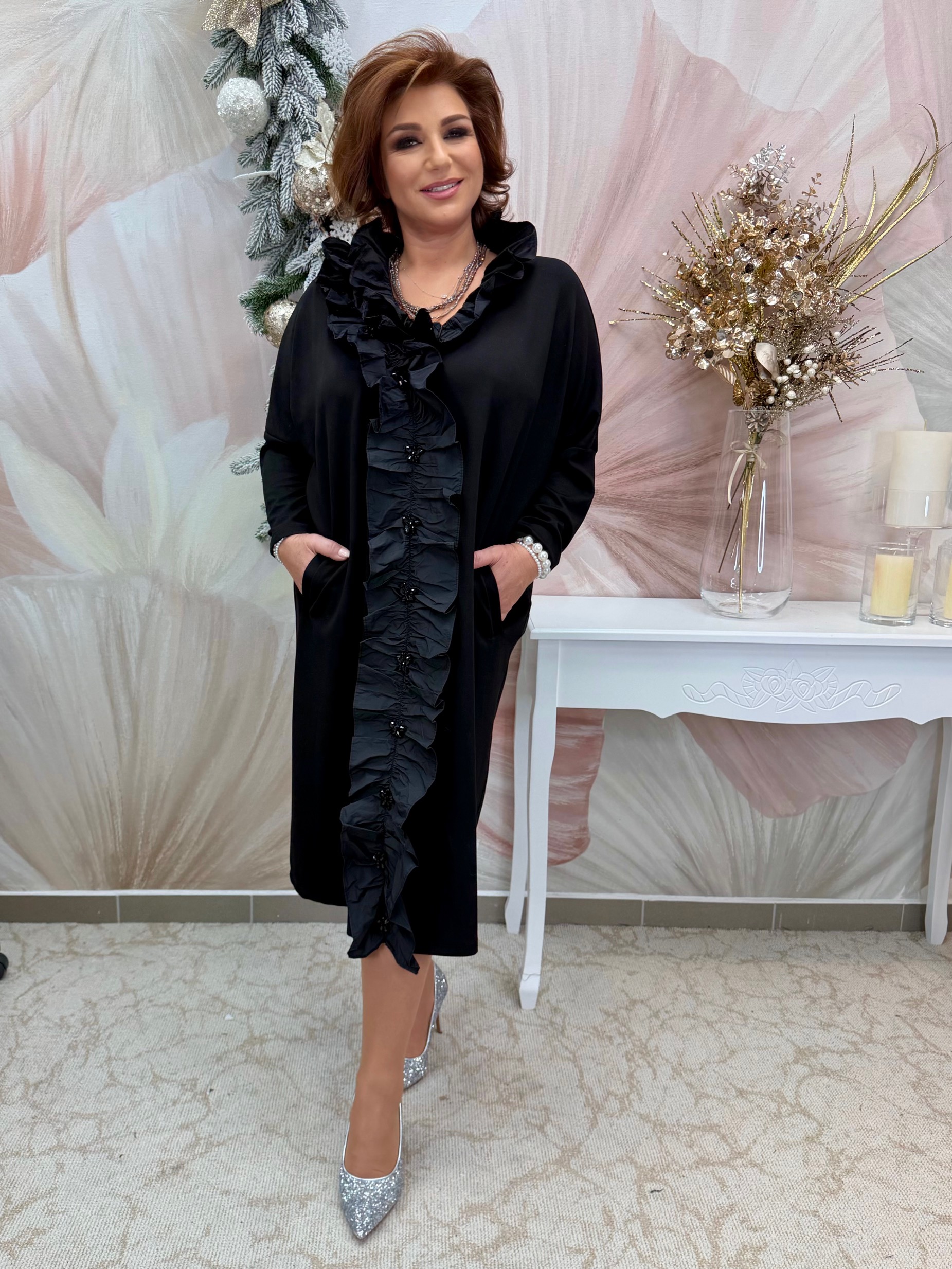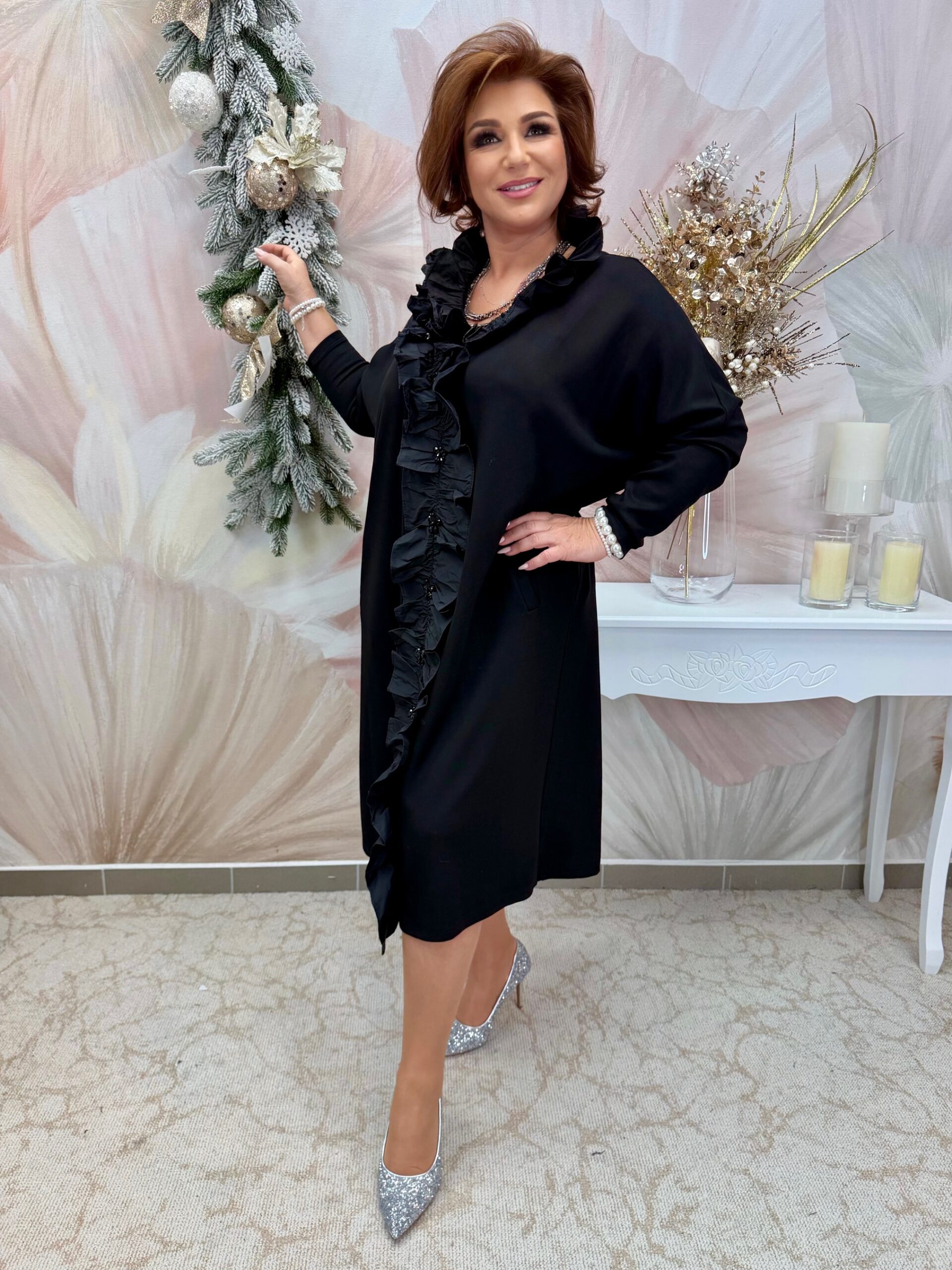 2025.11.30.Fekete alkalmi ruha fodros dísszel