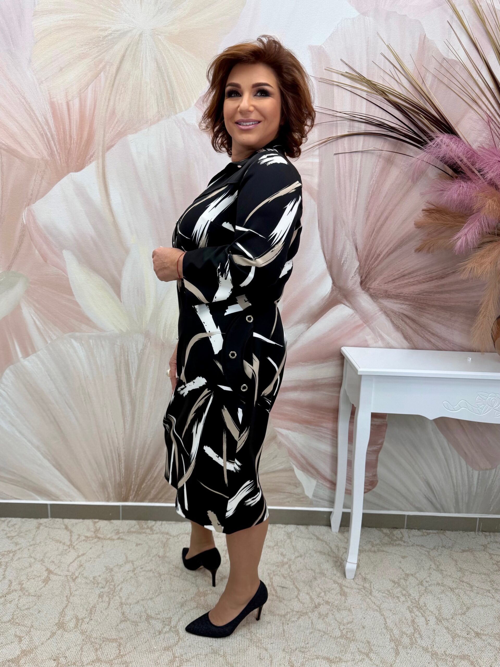 Fekete bézs galléros alkalmi hagymaruha