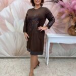 Barna pamut ruha bőrbetéttel, kristályvirággal