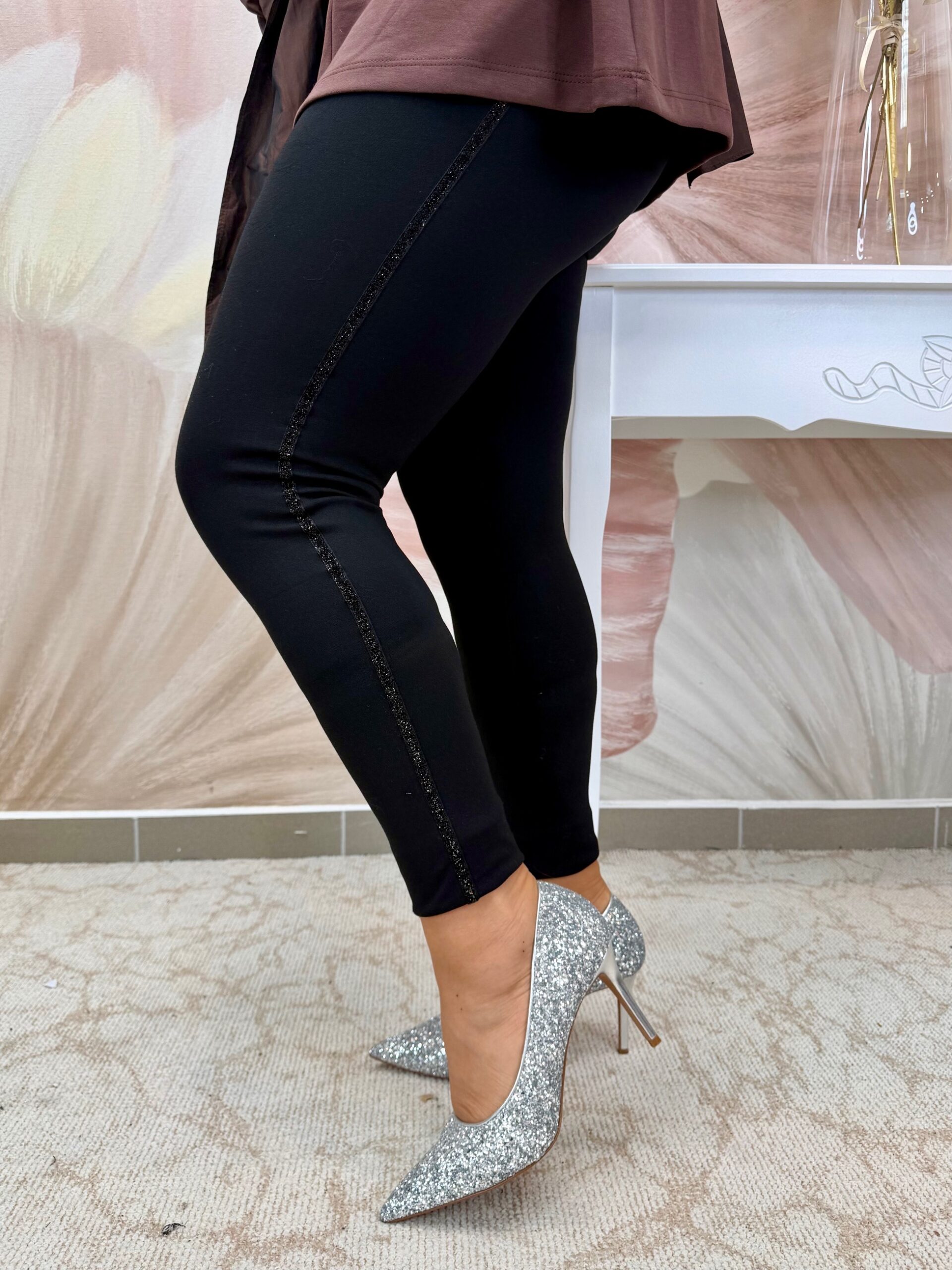 Fekete elasztikus vastag leggings oldalán fekete csillogó csíkkal