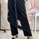 Elasztikus fekete nadrág fodros zsebbel, övvel