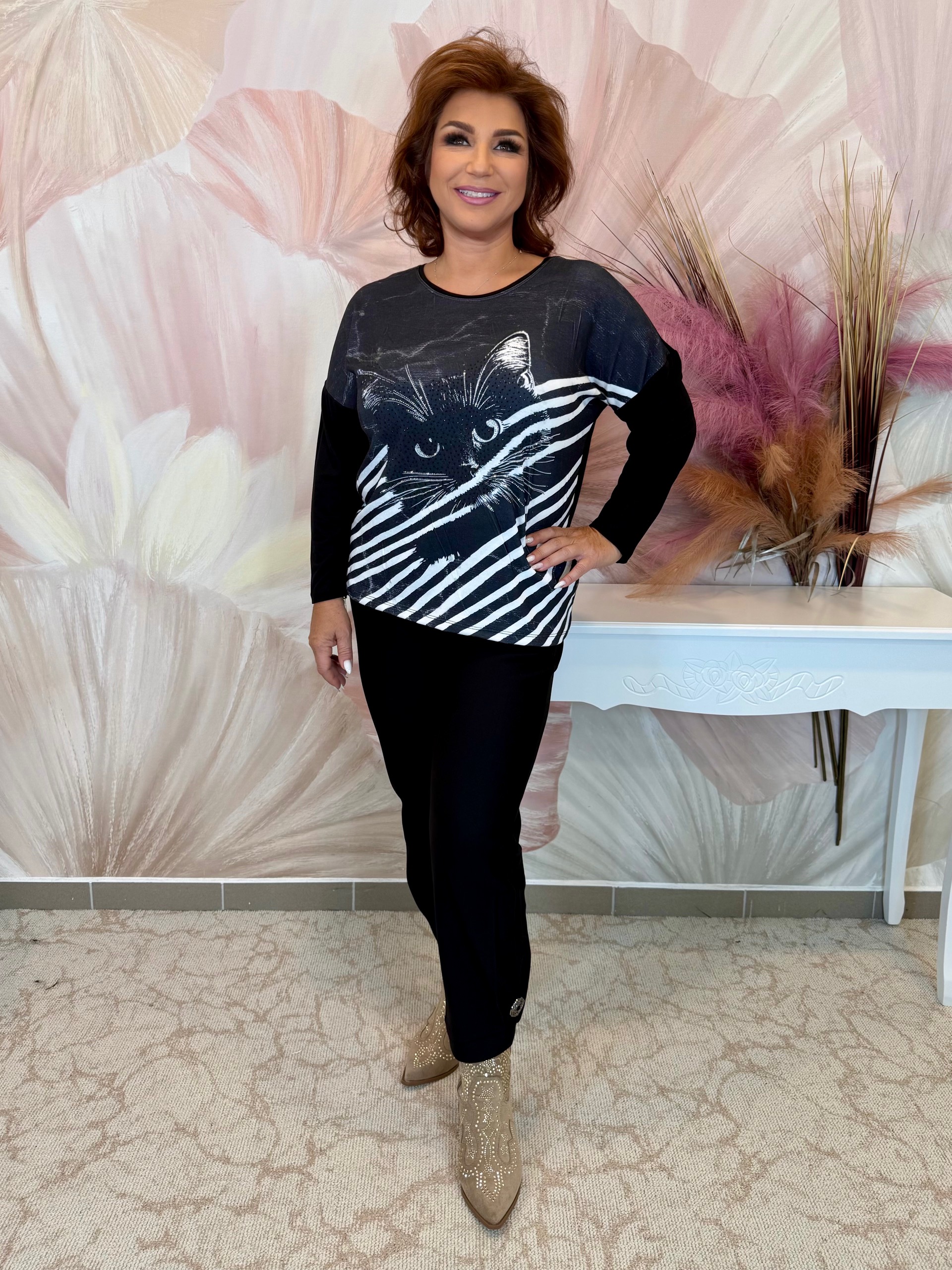 2025.10.09.Fekete-fehér csíkos cicás felső