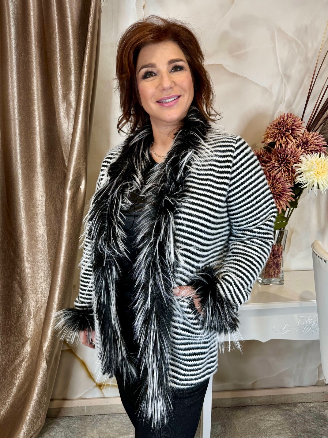2024.11.20.Fekete-fehér moher kardigán szőrmével