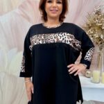 Fekete hosszított ocelotmintás tunika kristályokkal