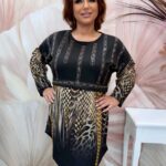 Fekete hosszított ocelotmintás tunika kristályokkal