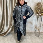 Grafit színű meleg téli kabát kristályos zsebekkel és ujjakkal
