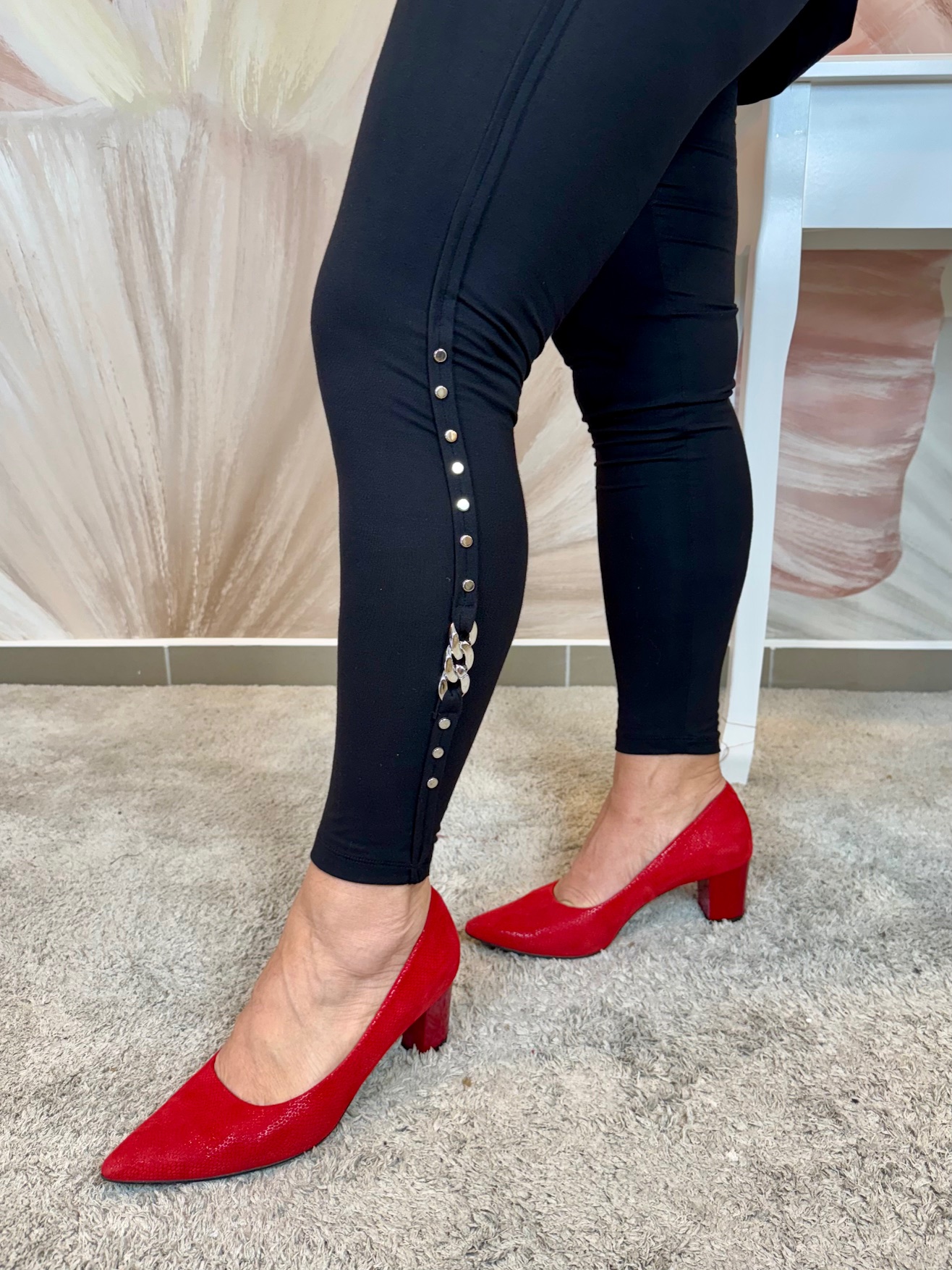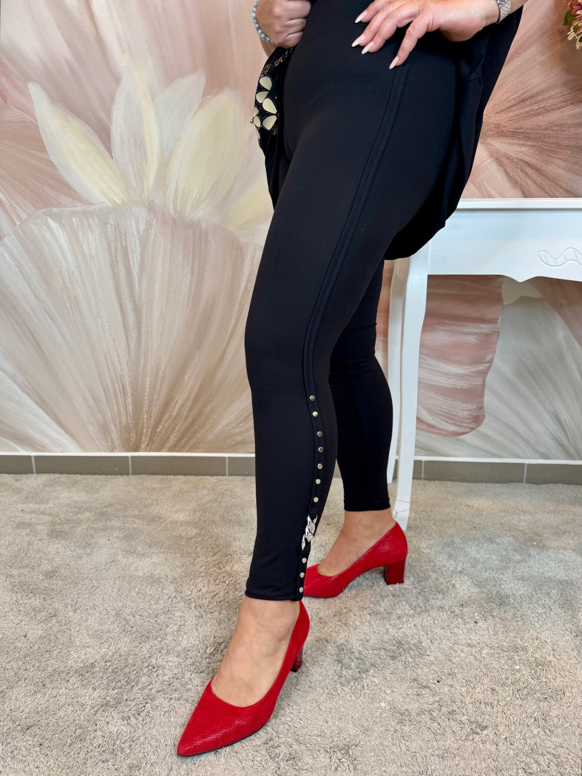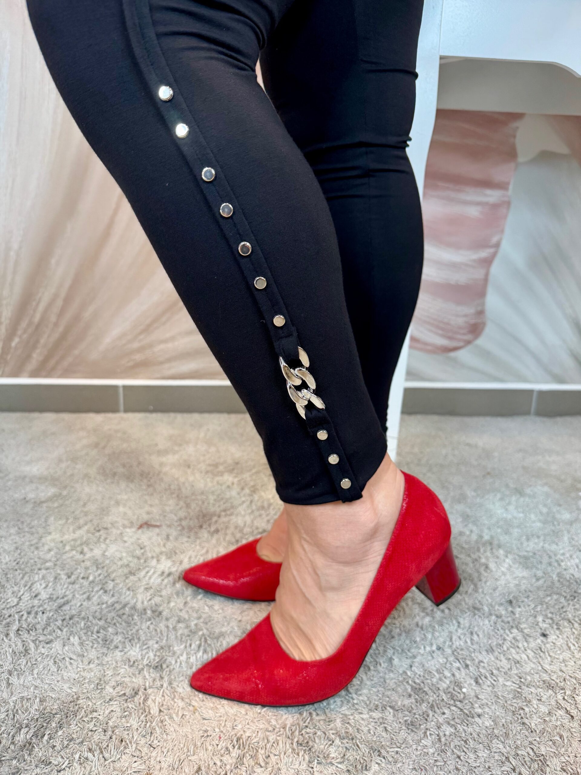 Fekete pamut leggings ezüst láncdísszel, ezüst patentokkal