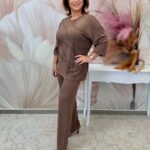 Barna pamut ruha bőrbetéttel, kristályvirággal