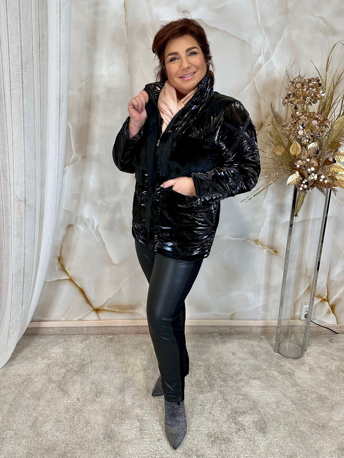 Fekete steppelt kabát ujja pamut, kristályokkal