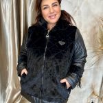 Hosszú fekete szőrme mellény