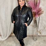 Fekete hosszú kabát kristályokkal, oldalán pamut sztreccs anyagból (54-58)