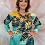 Csinos virágmintás felső arany strasszokkal – zöld