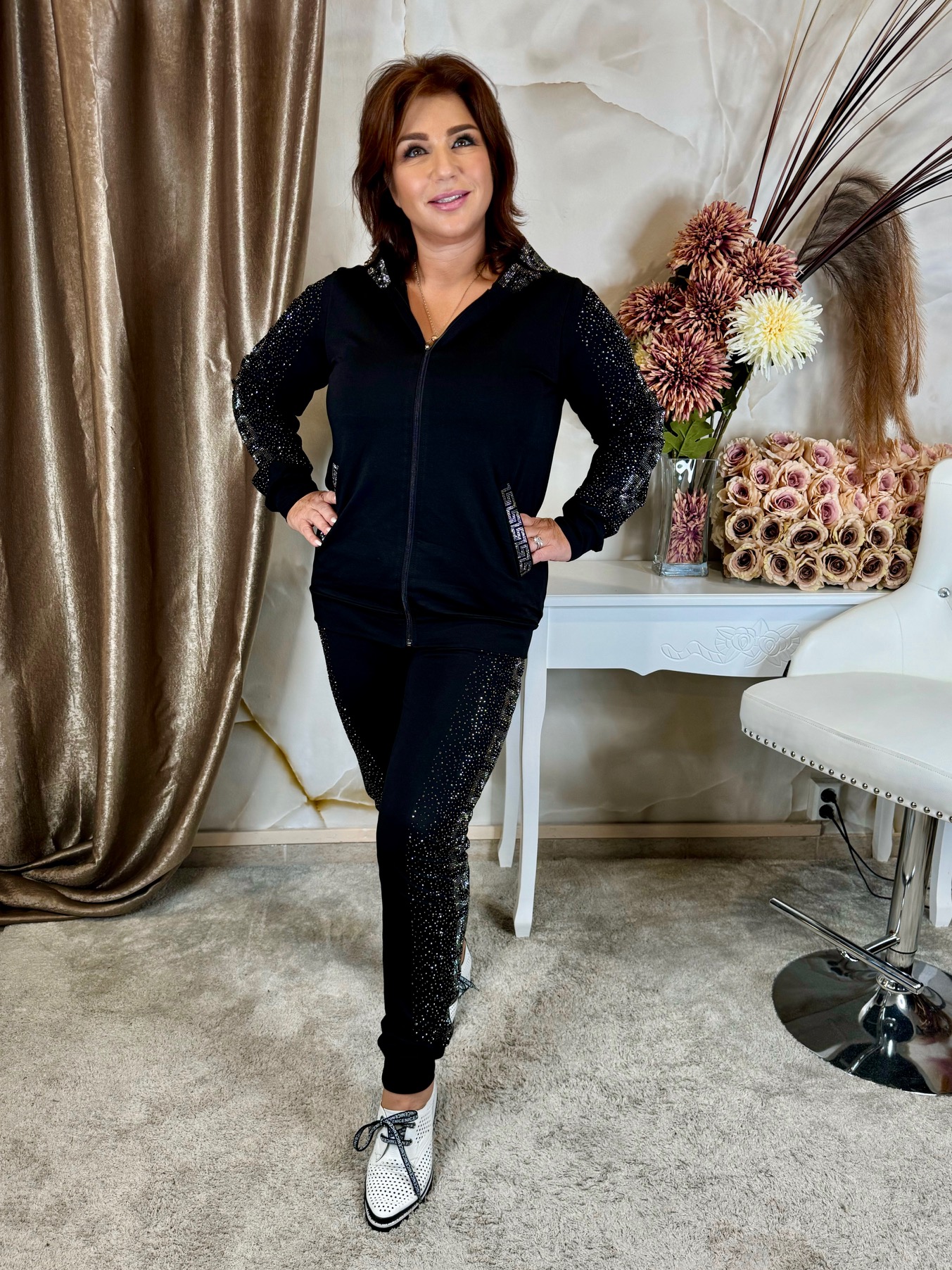 Fekete bőrbetétes szabadidő szett ezüst kristályokkal