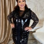 Fényes fekete steppelt mellény kristályokkal