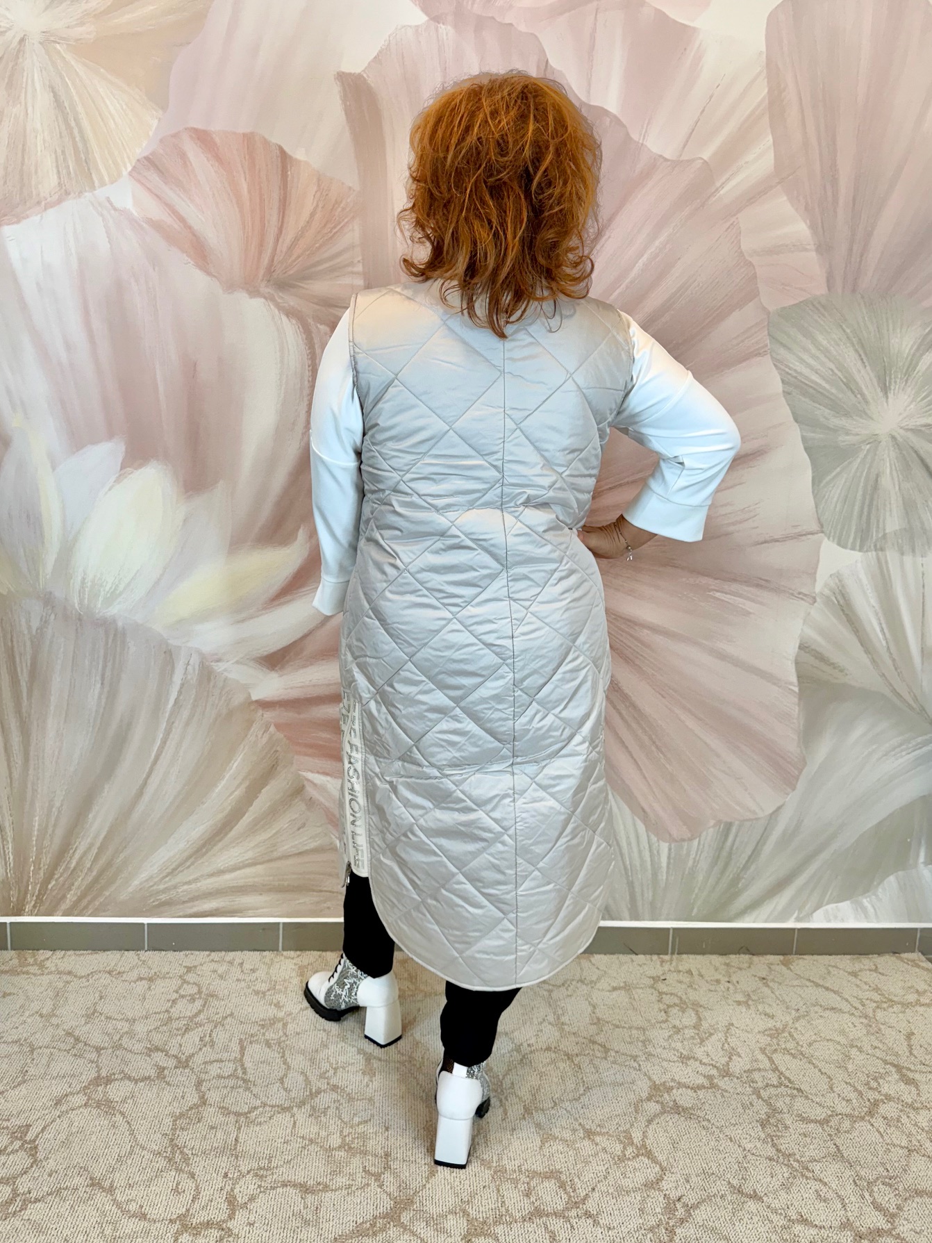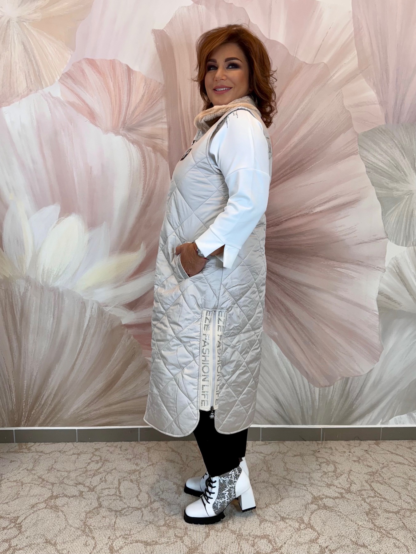 2025.10.02.Hosszú krémszínű mellény szőrmés gallérral