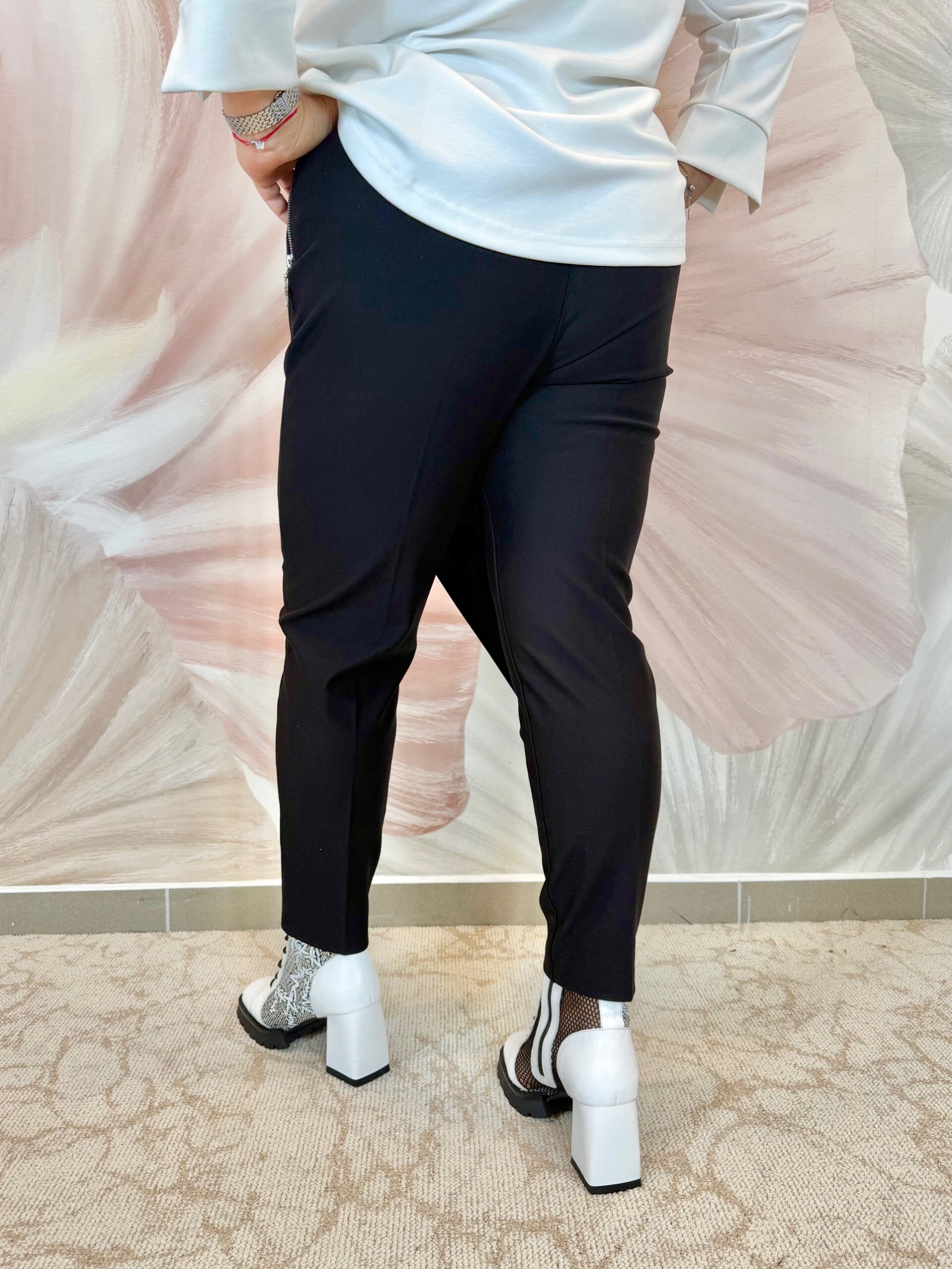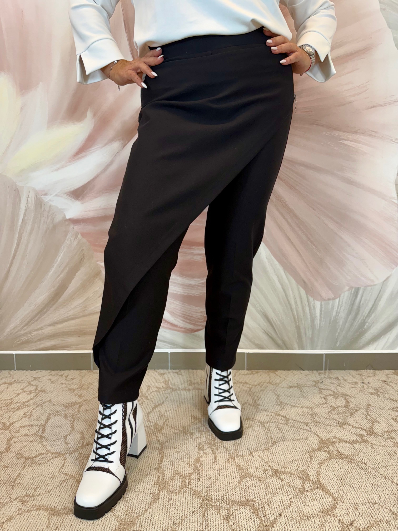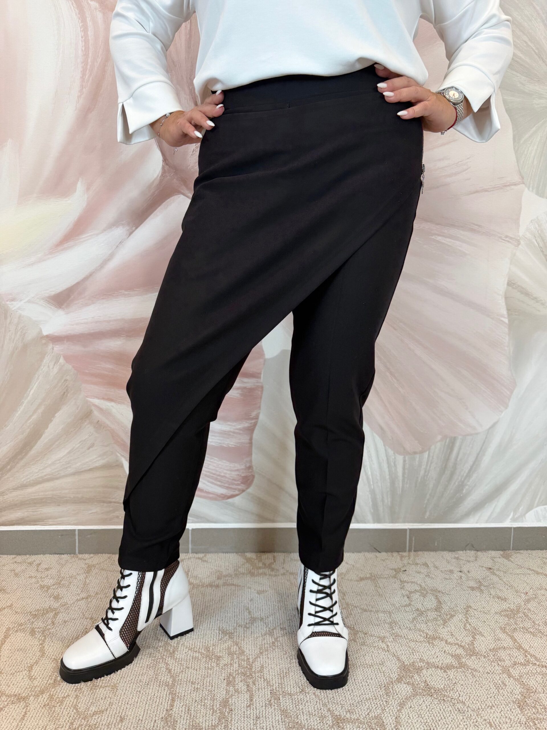 Különleges elasztikus fekete nadrág, elején átlapolt