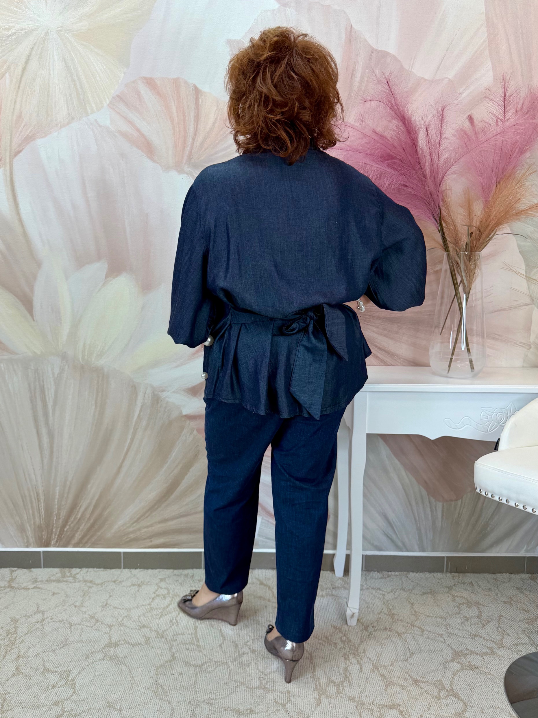 2026.04.09.Különleges farmerhatású blúz gyönyörű fehér gyöngyökkel