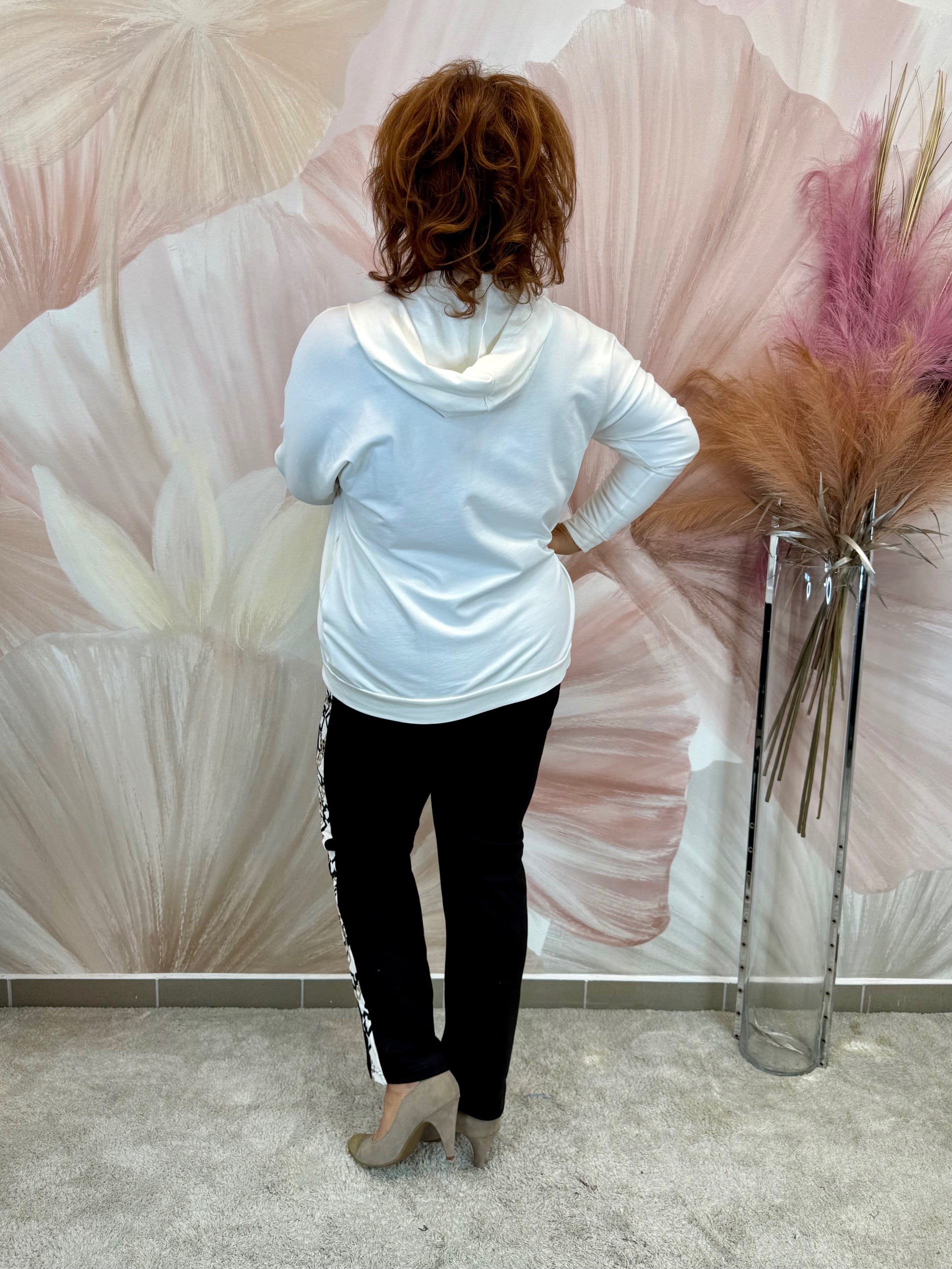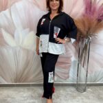 Fekete fehér szett, virágos zippes felsővel