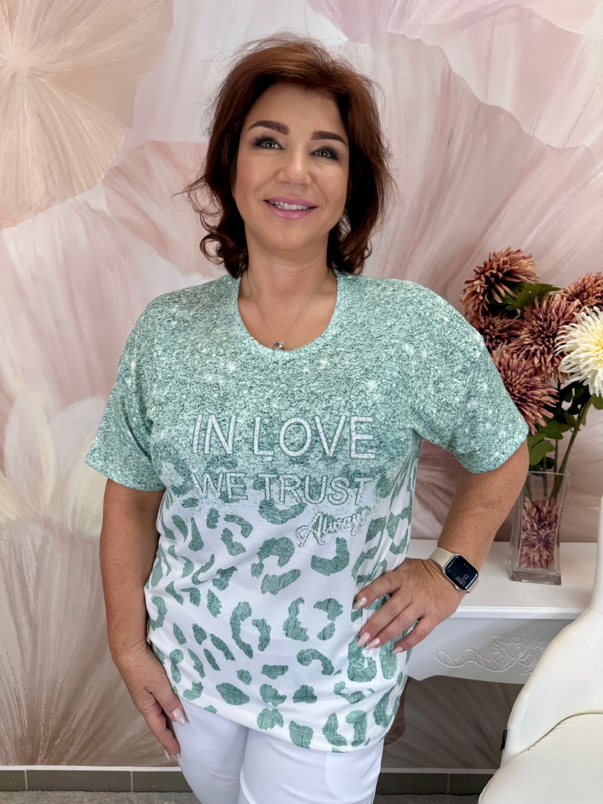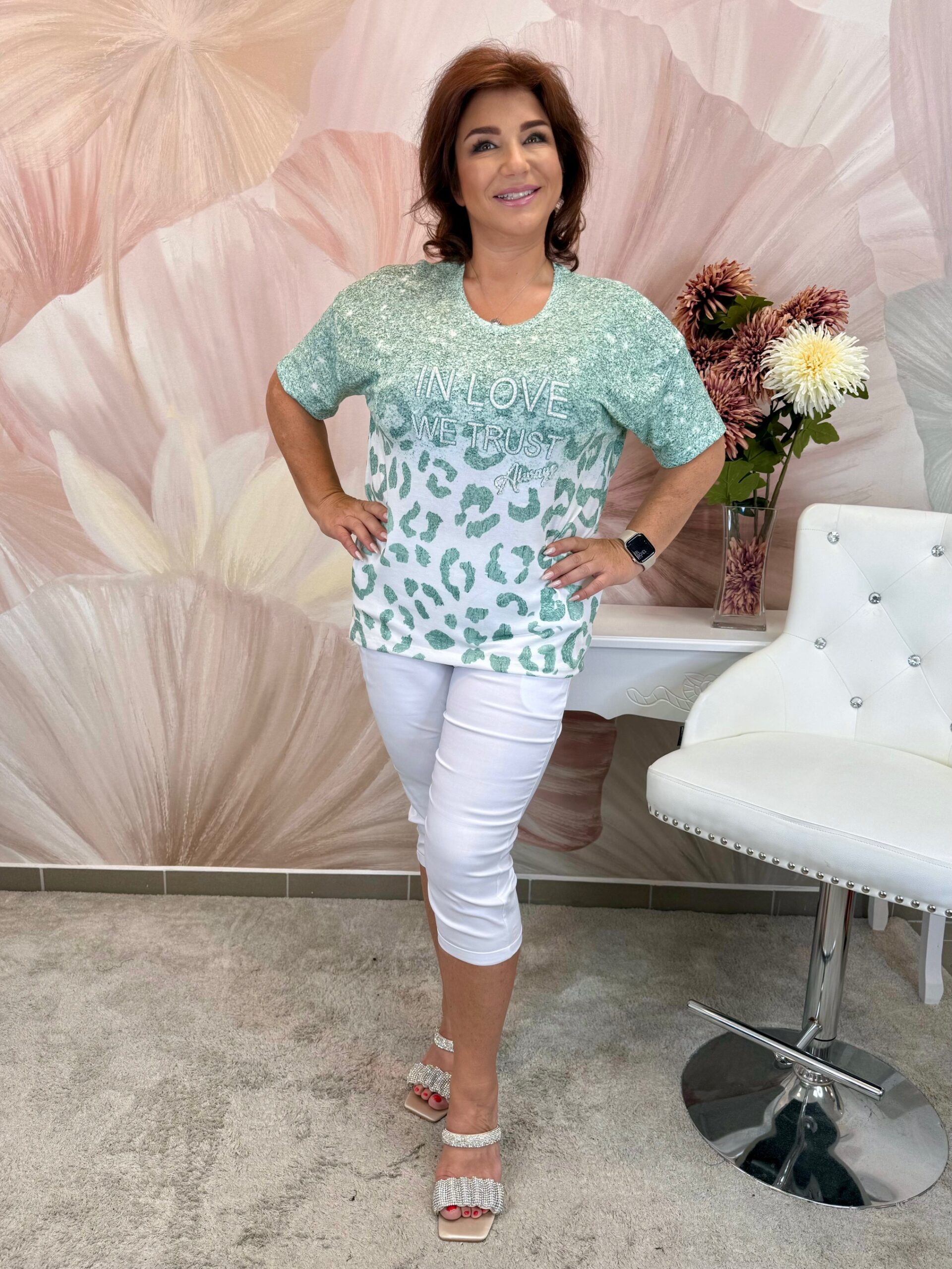 2025.06.19.Lenge mentazöld felső gyöngyház kristályokkal, ocelotmintával
