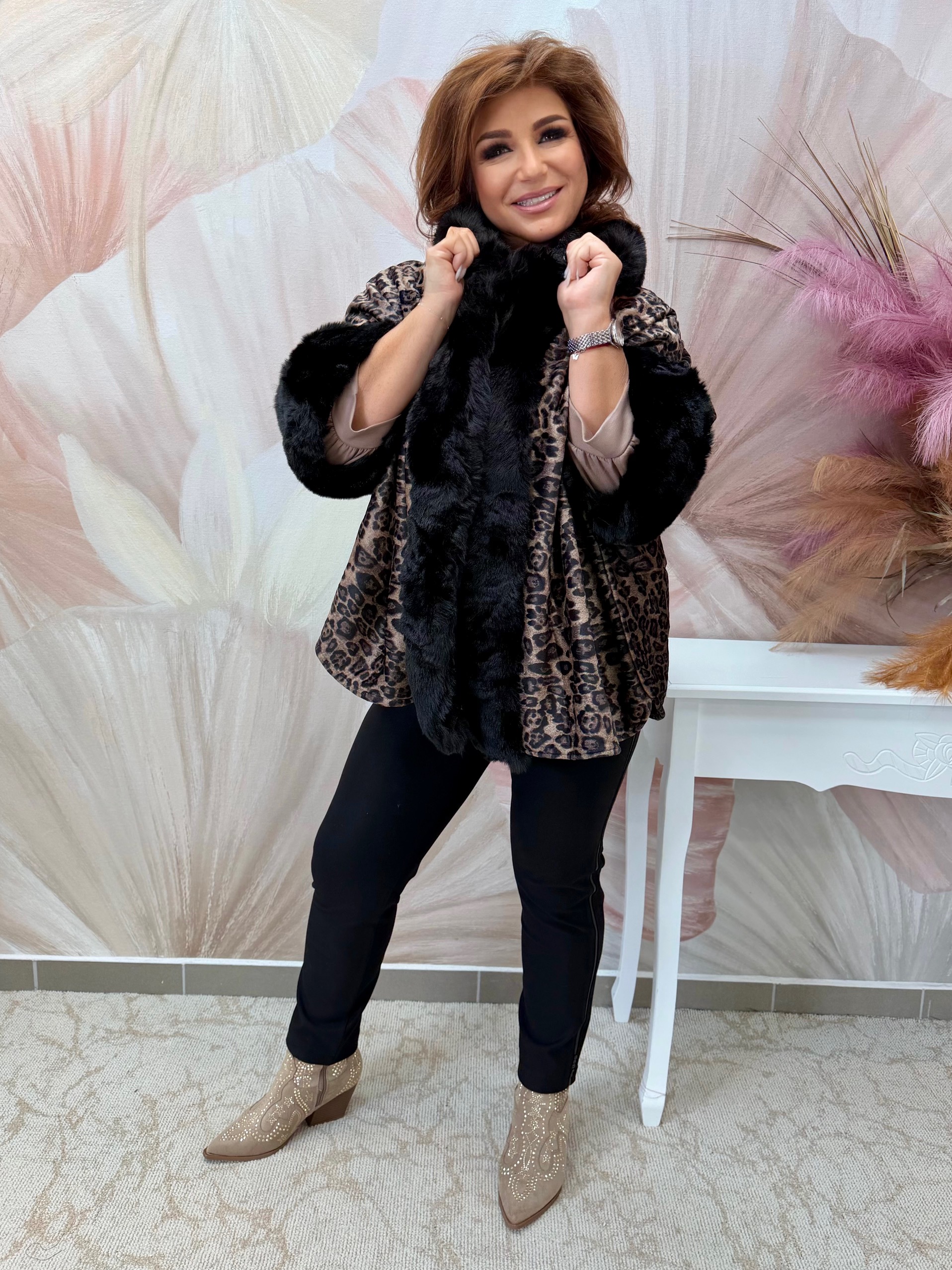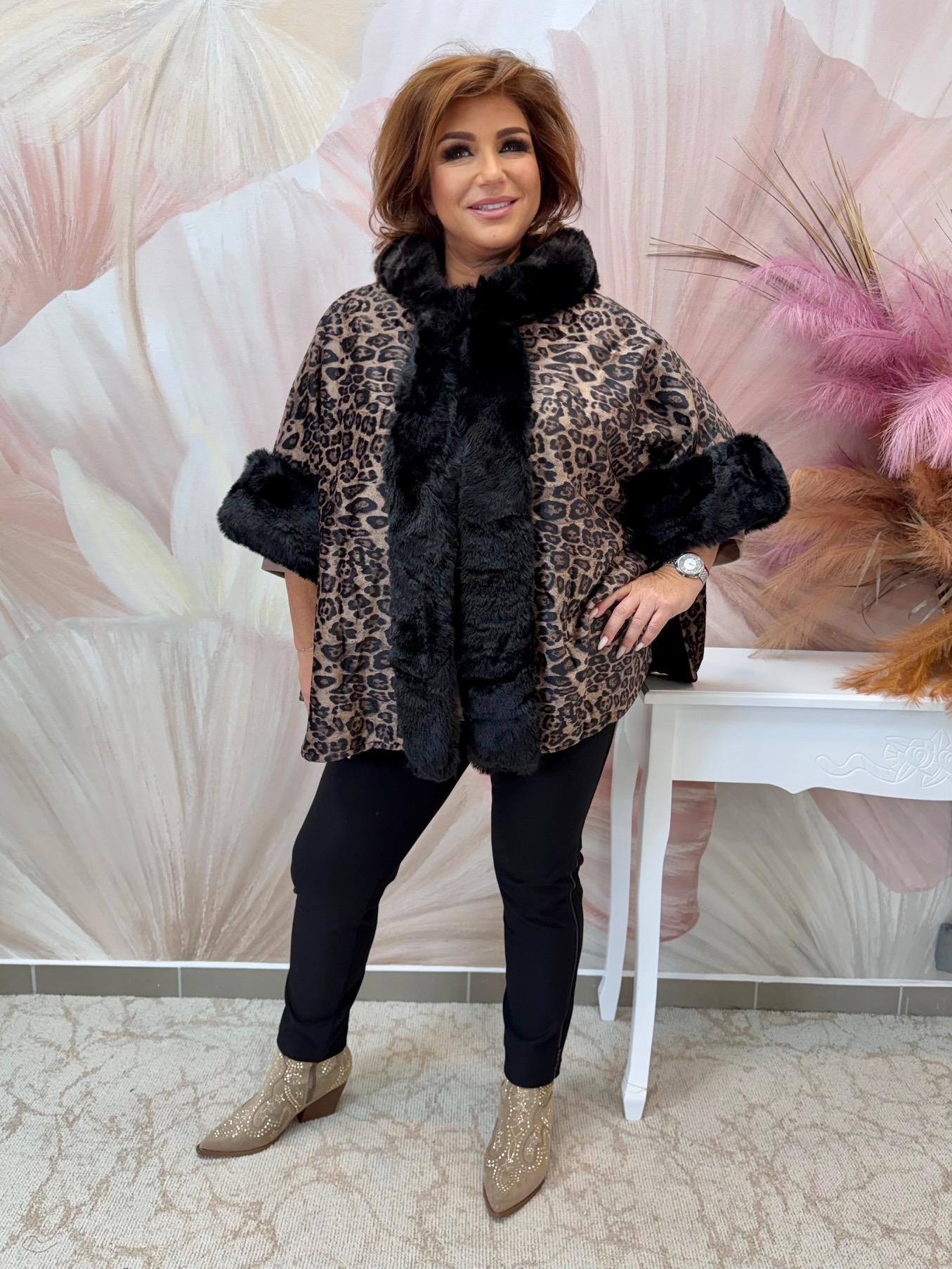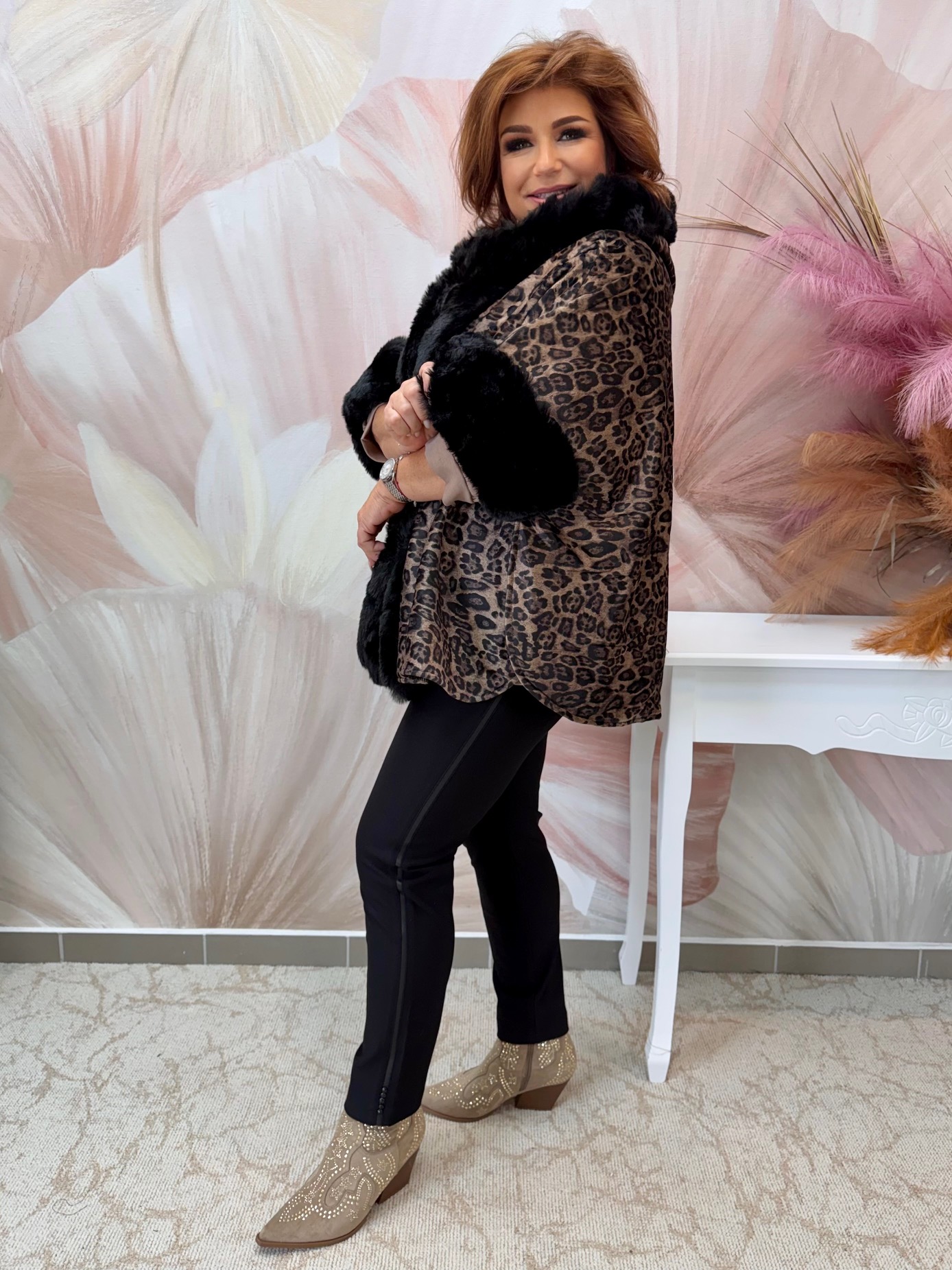 2025.10.26.Ocelotmintás szőrmés poncsó/kiskabát