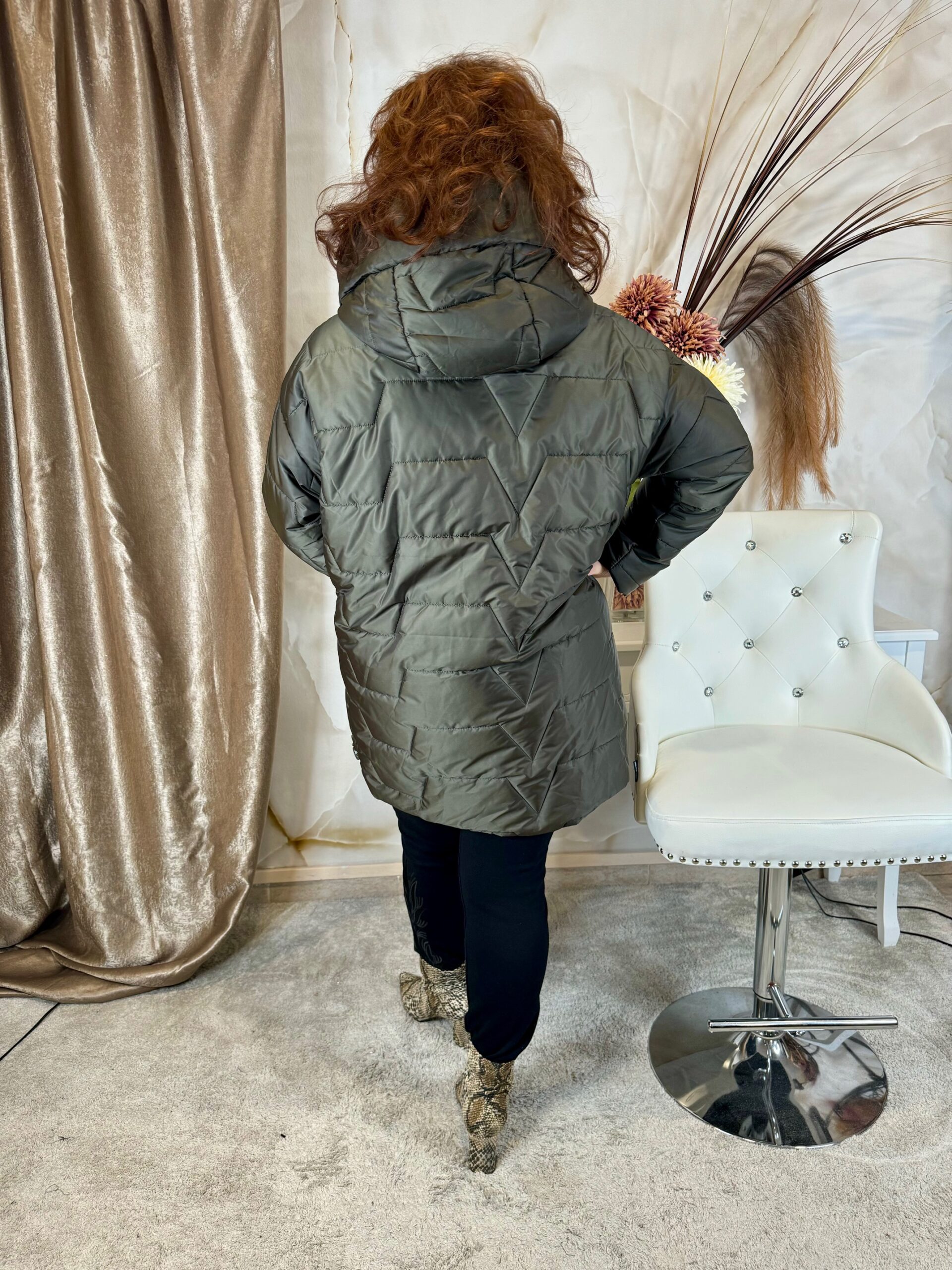 2024.11.03.Olajzöld középhosszú letisztult télikabát