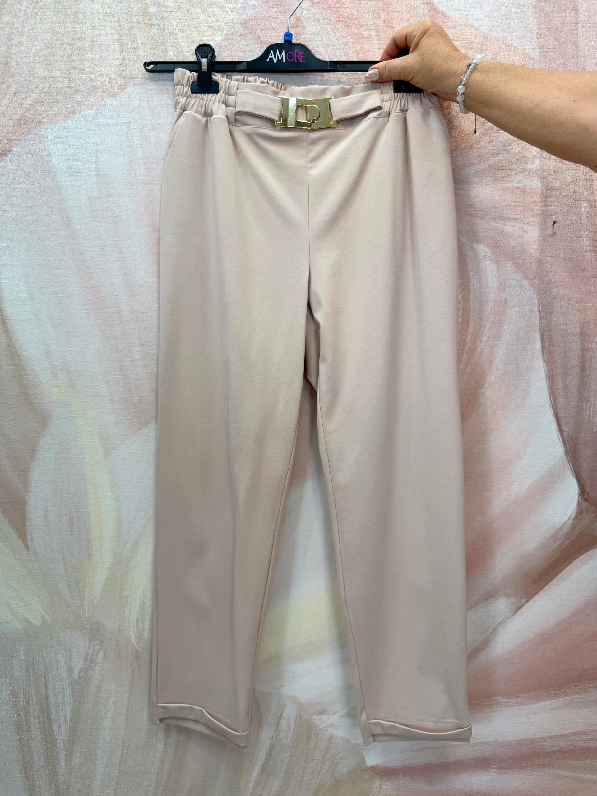 Csinos, csipkebetétes bézs nadrágkosztüm