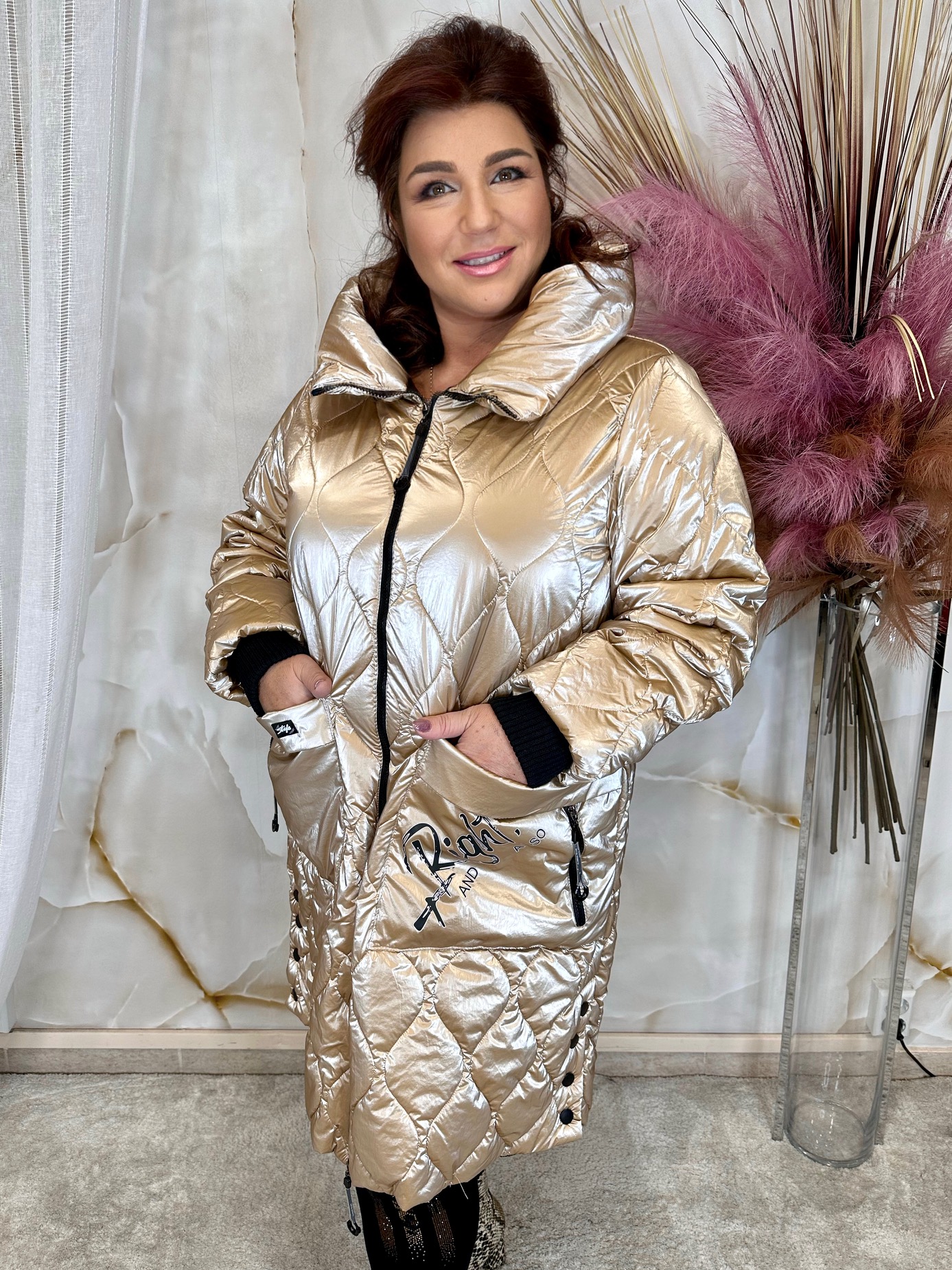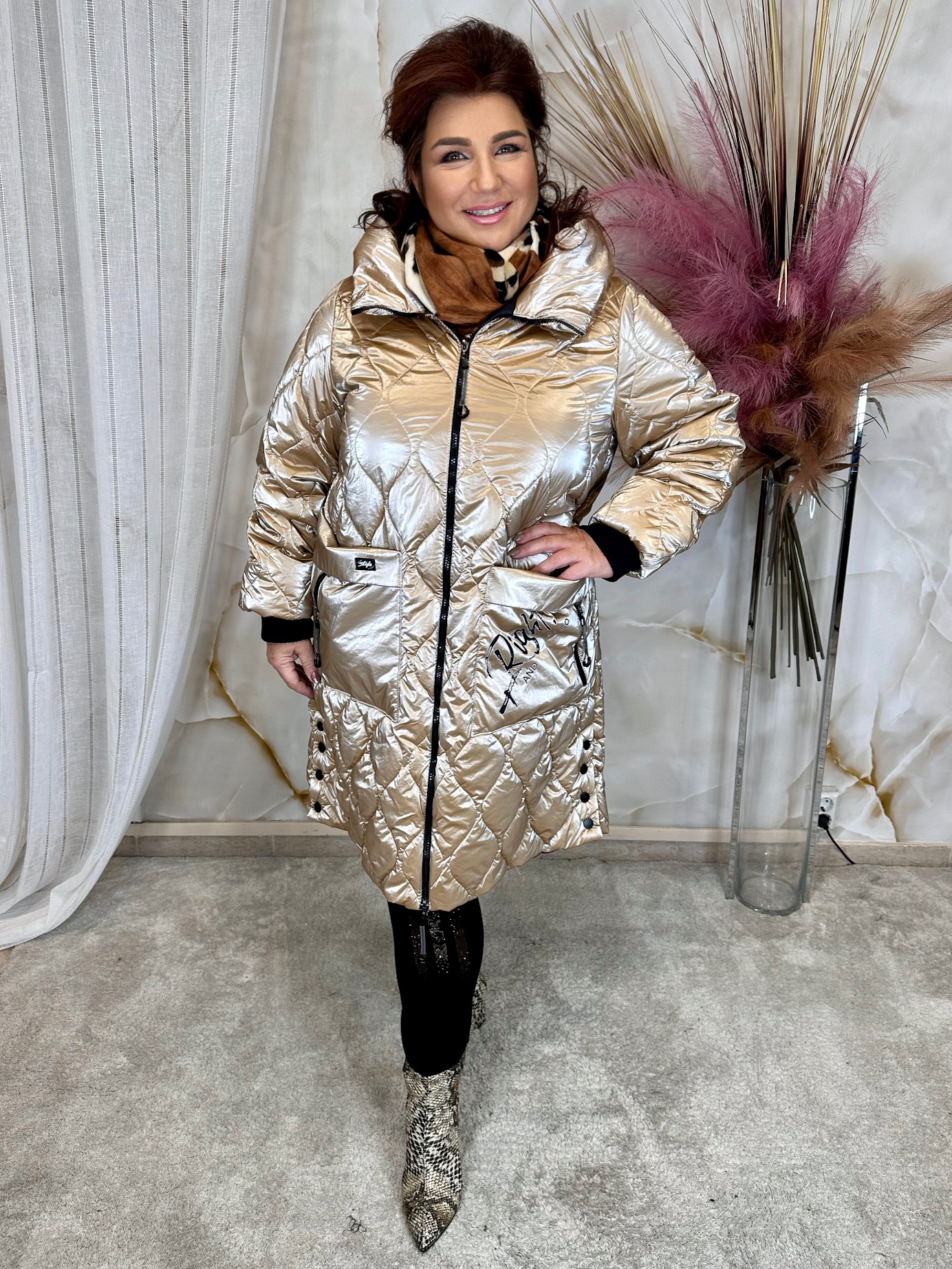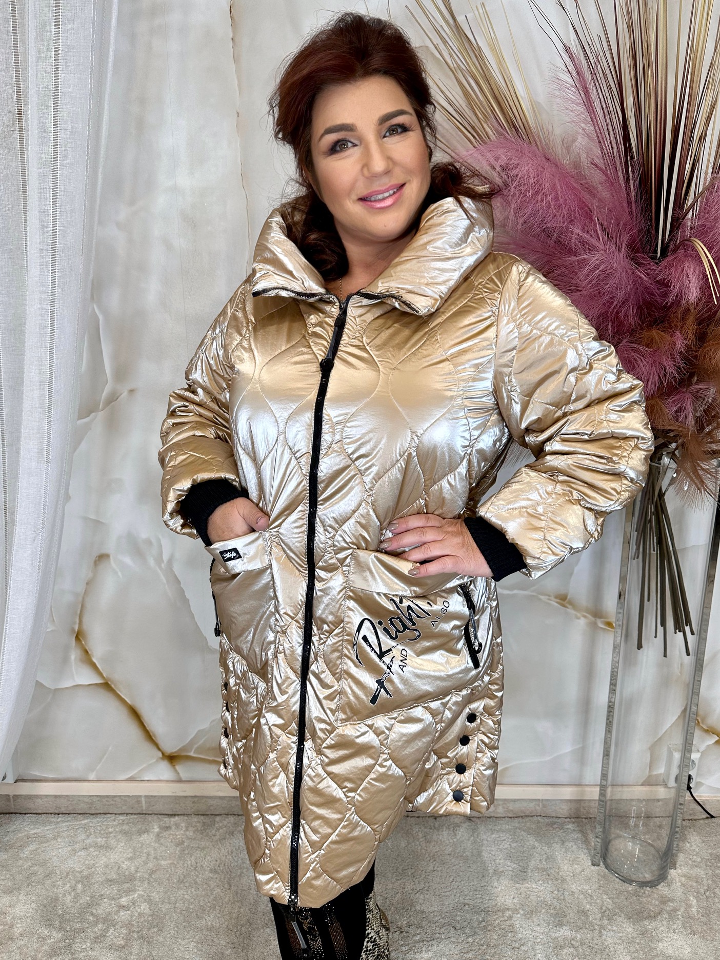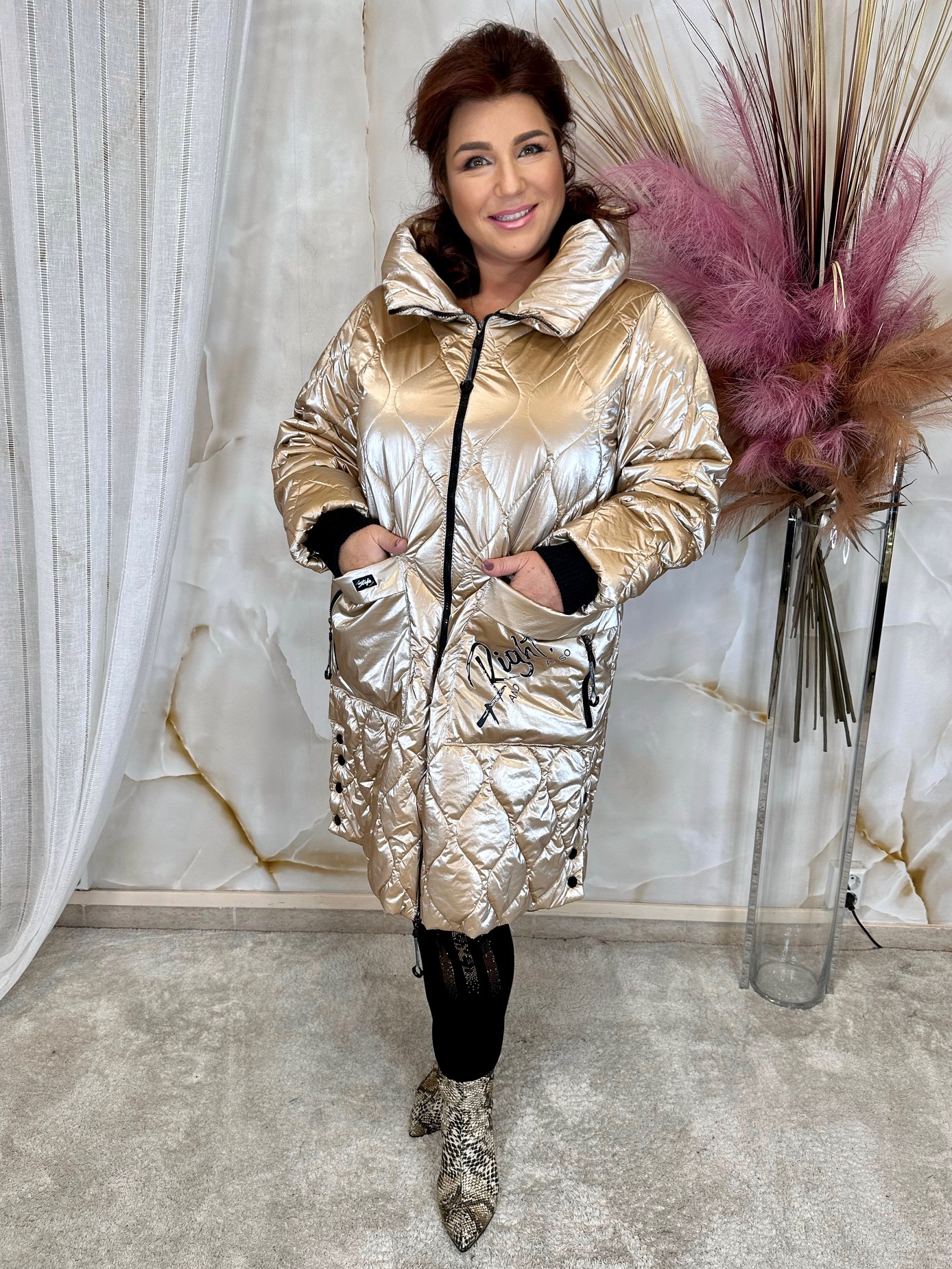 Pezsgő színű magas nyakú steppelt, bélelt télikabát