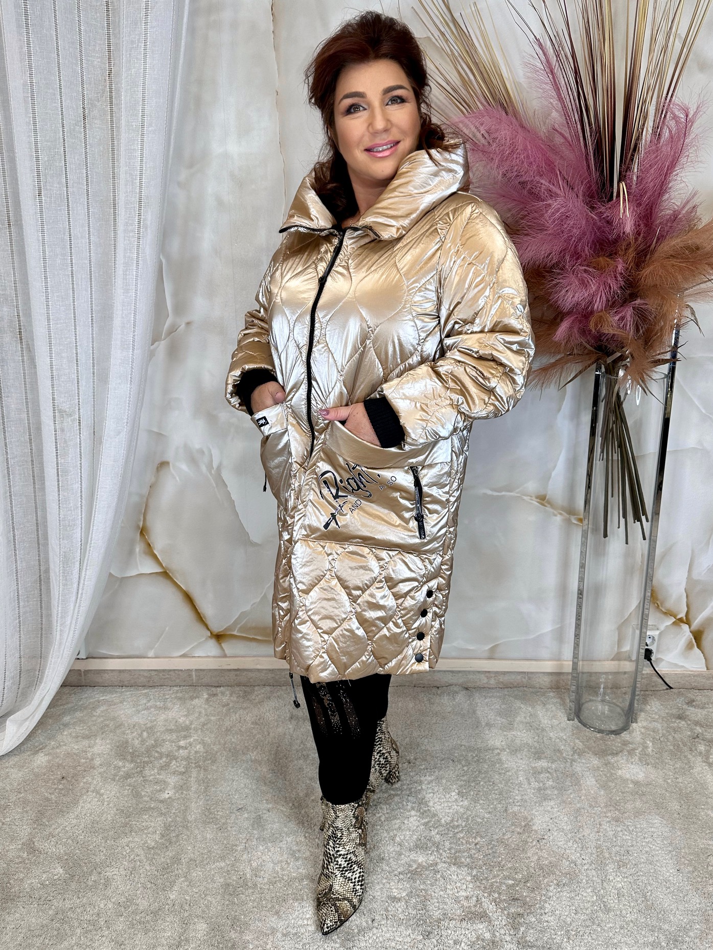 2024.10.10.Pezsgő színű magas nyakú steppelt télikabát