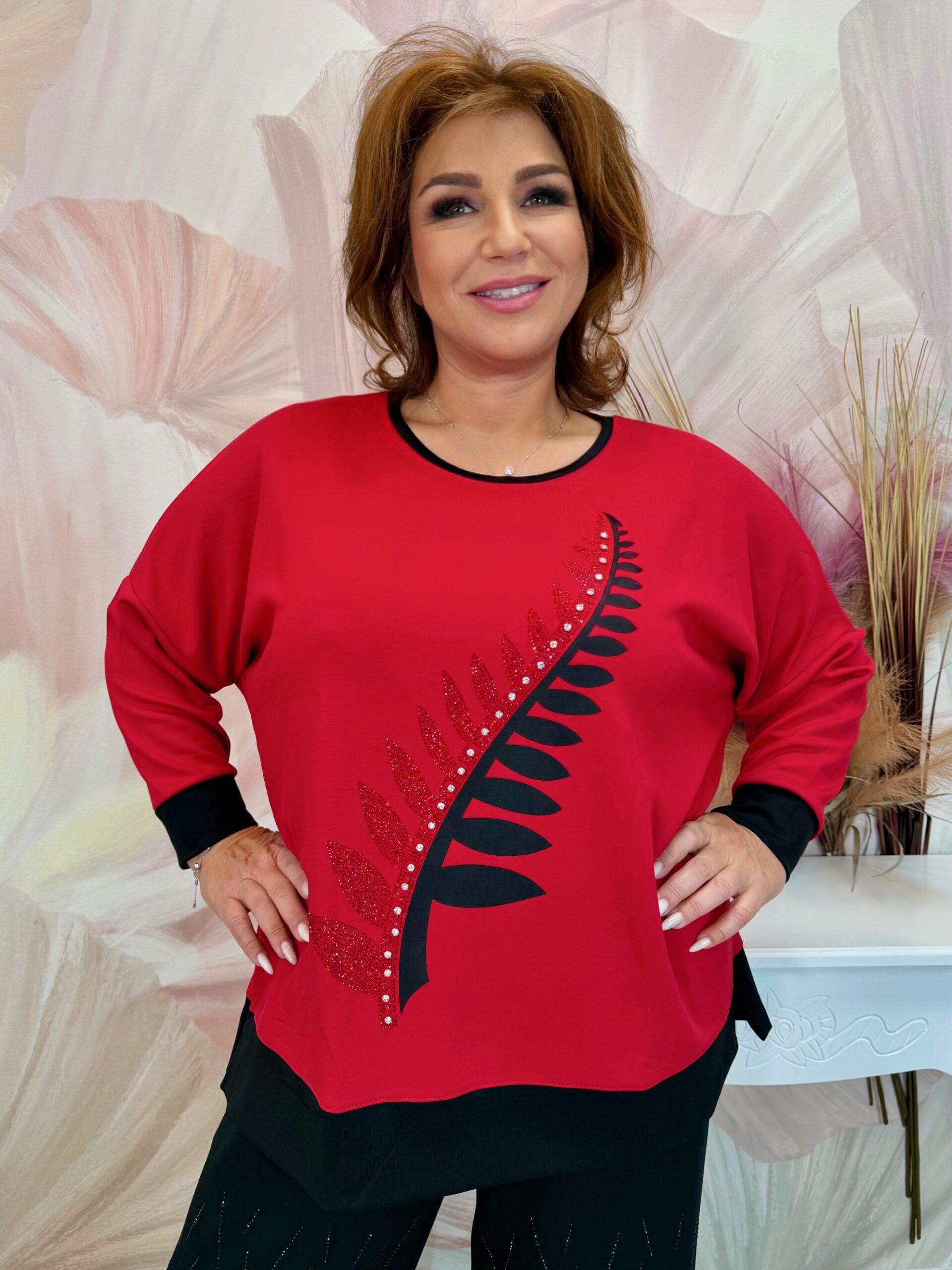 2025.10.16.Piros felső fekete passzéval, strasszokkal