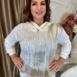 Csinos fehér pulcsi arany díszítéssel, kristályokkal
