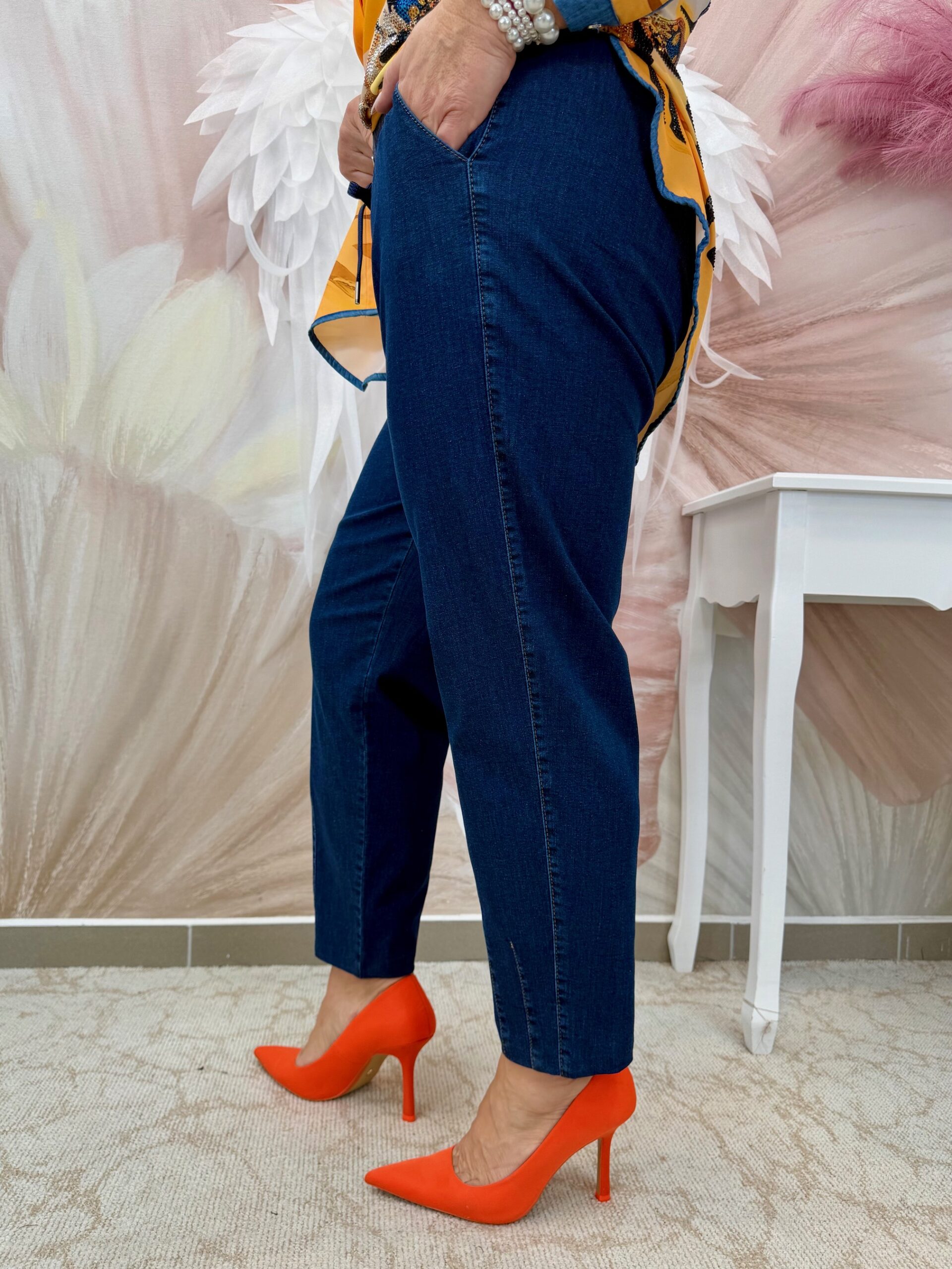 Végig elasztikus anyag, gumis derekú, közepesen bő szárú
