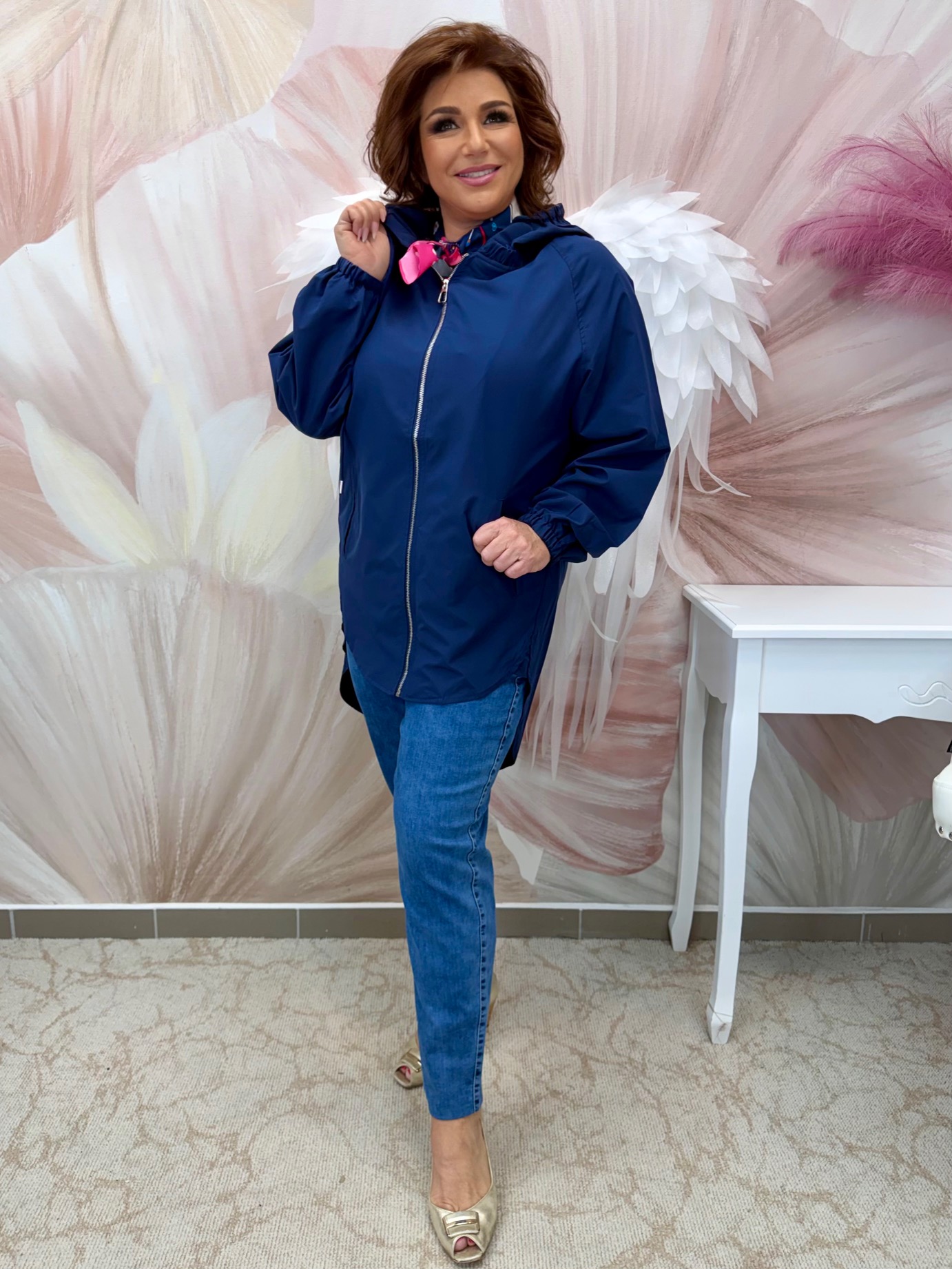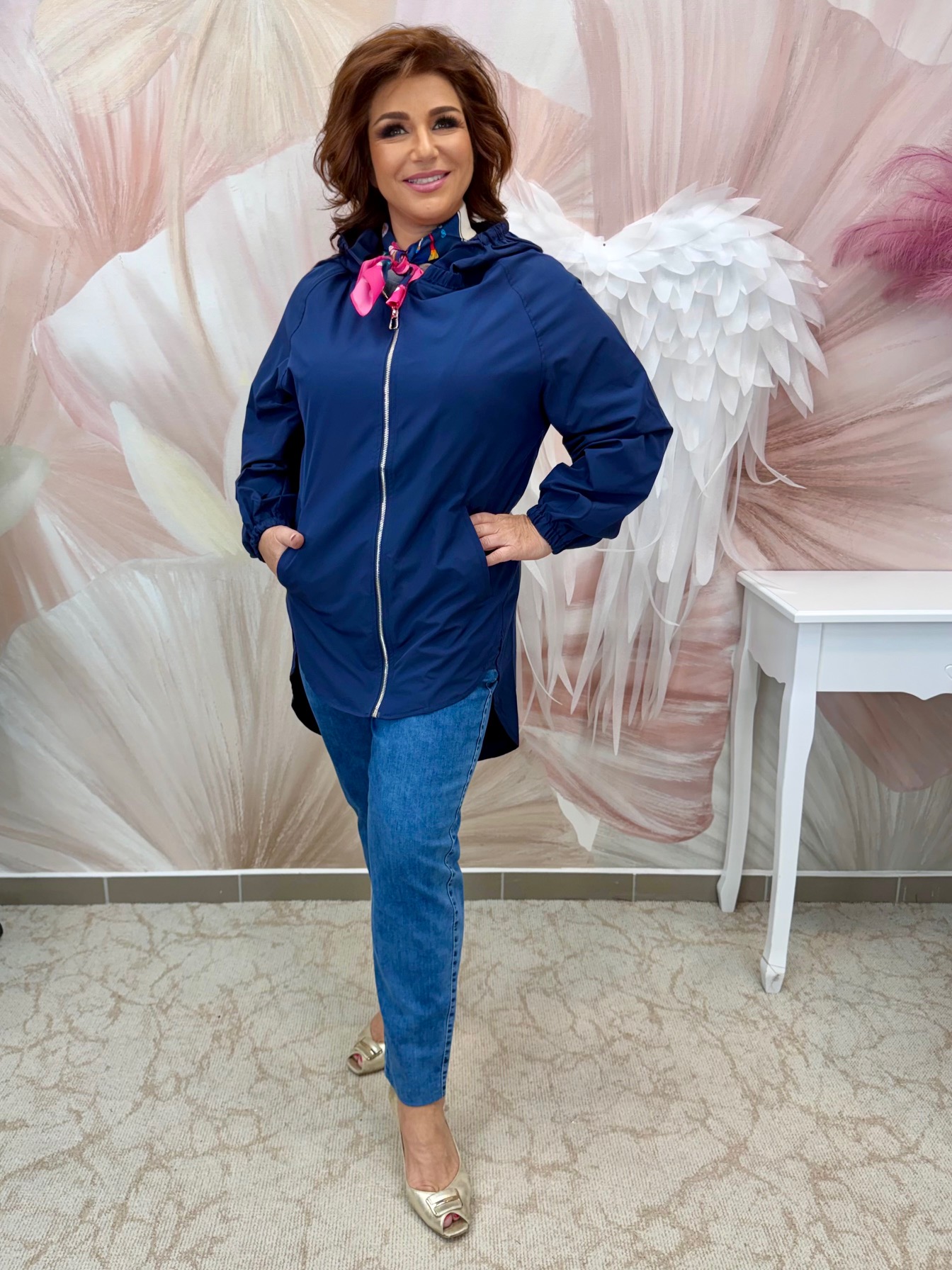 2026.03.05.Sötétkék hosszított csinos ballonkabát