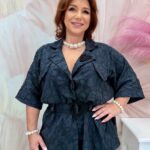 Fekete pillangómintás elasztikus felső