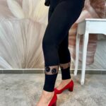 Fekete pamut leggings tüllbetéttel és patentokkal