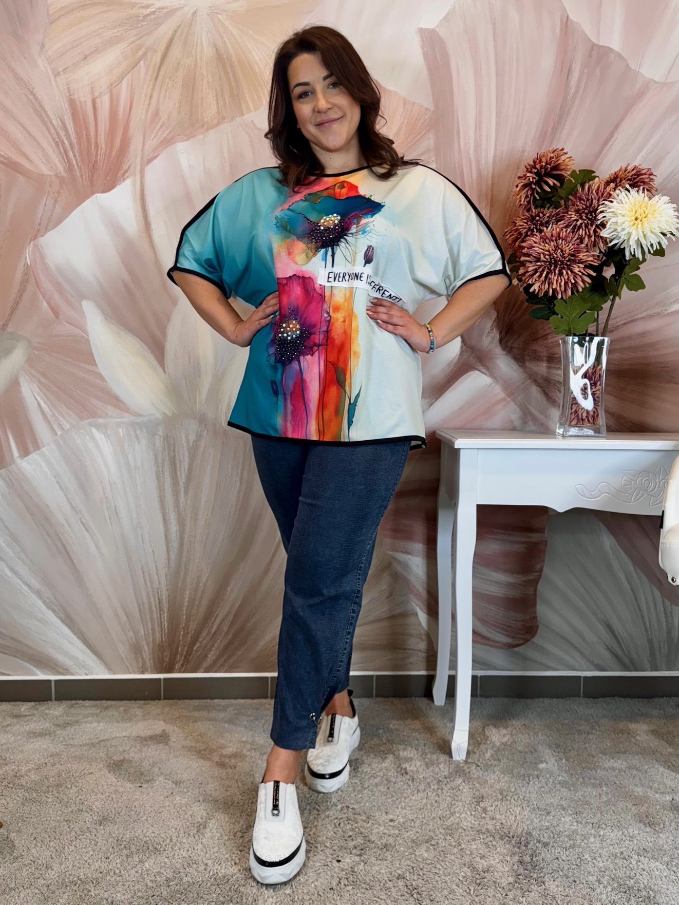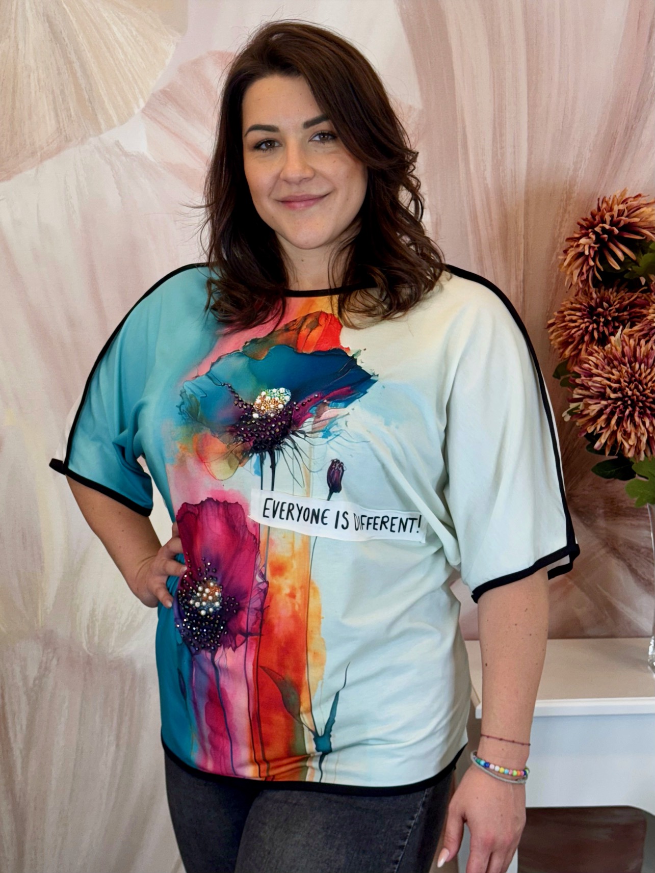 2025.05.15.Színes hosszított tunika virágokkal, kristályokkal