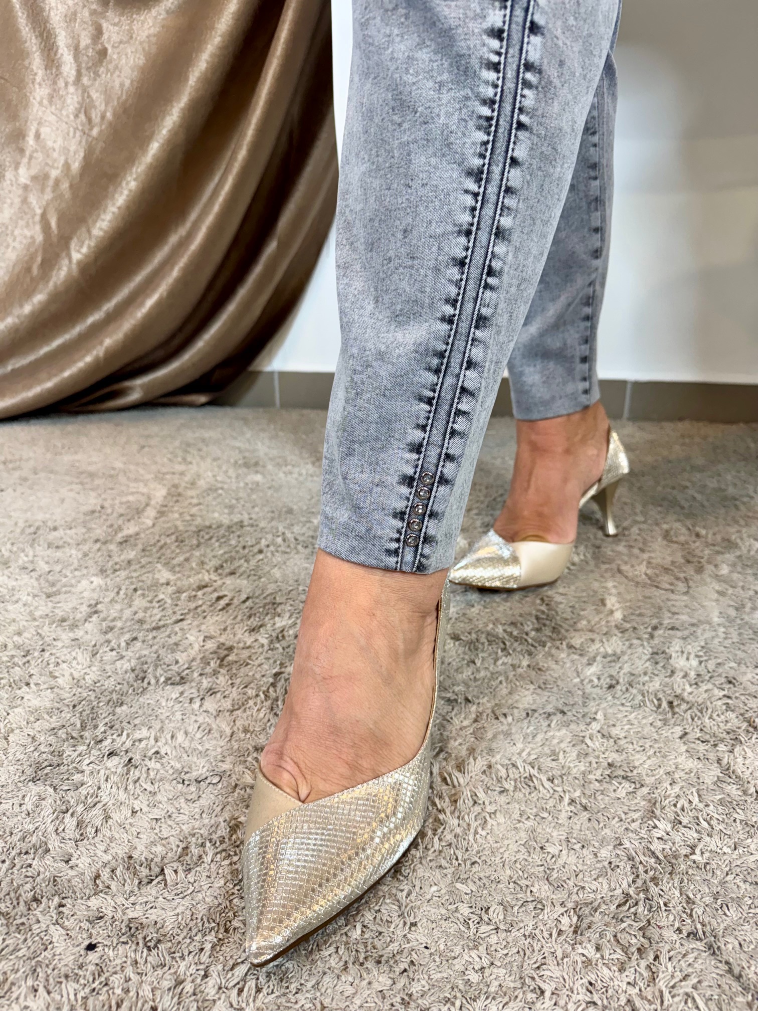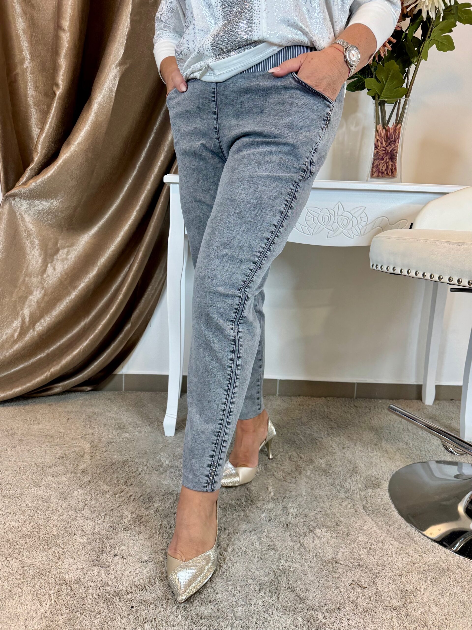 Szürke, átmeneti vastagságú, letisztult farmernadrág