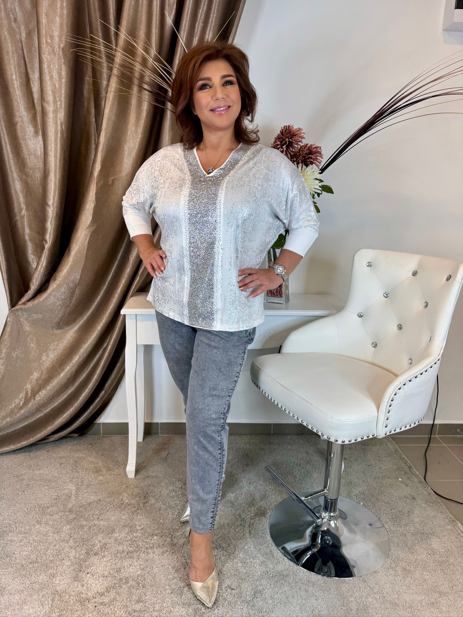 Elasztikus fekete nadrág bokáján ezüst dísszel