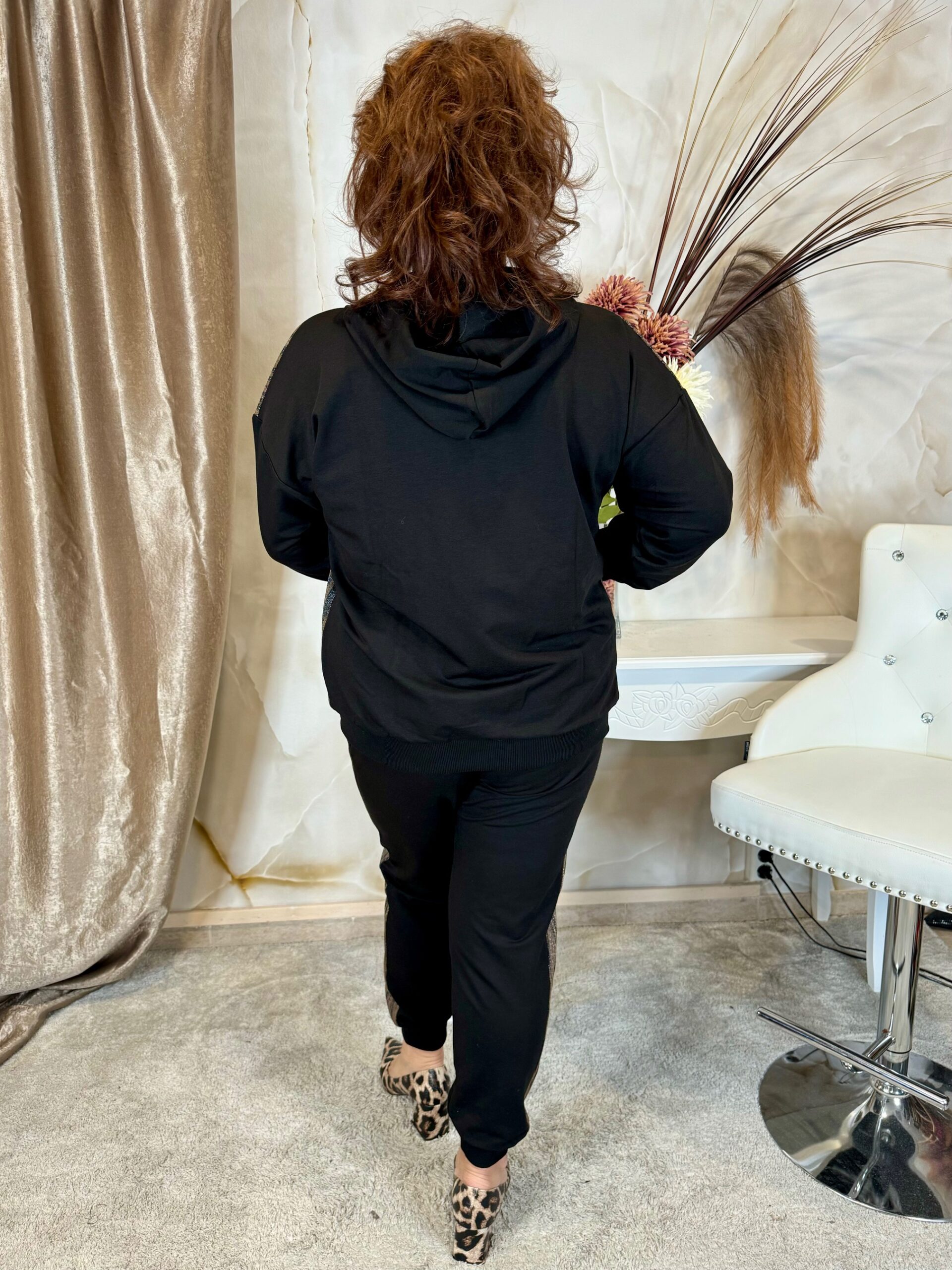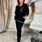 Fekete bőrbetétes szabadidő szett ezüst kristályokkal