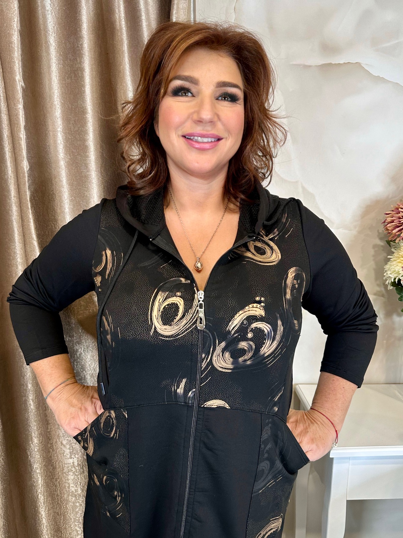 2024.11.10.Végig zippes csinos fekete ruha bronz díszítéssel