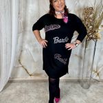 Fekete hosszított tunika/ruha bársonyos mintával