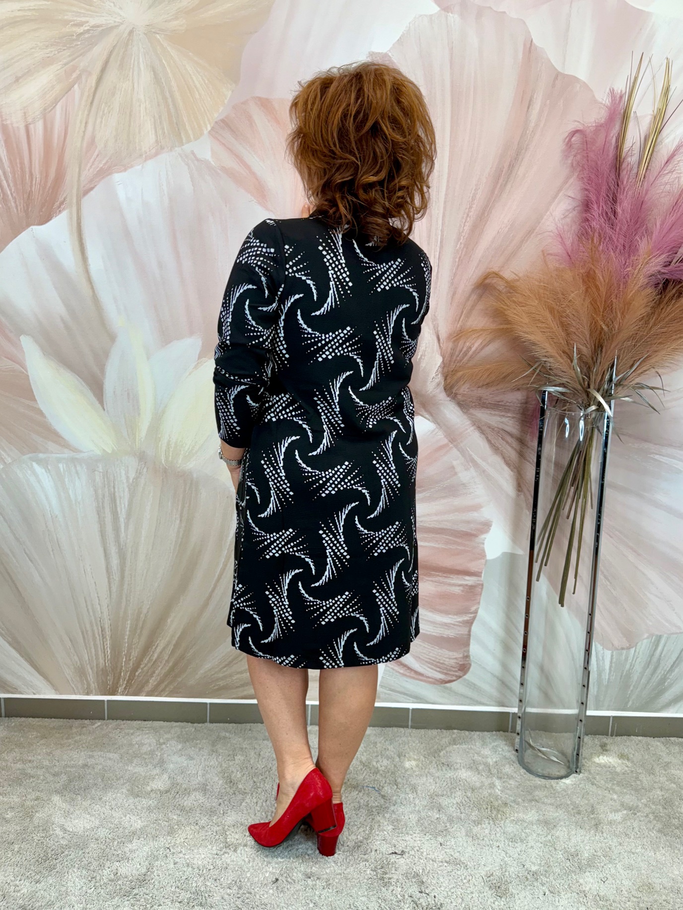 Fekete-fehér csinos macimintás ruha gyöngypatentokkal