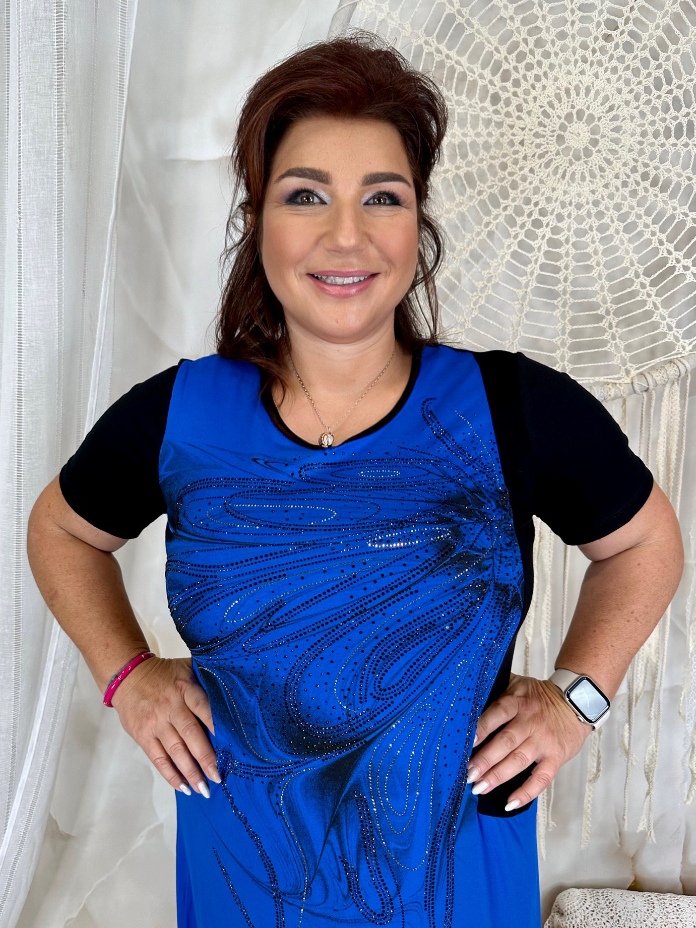 Vékony királykék pamut ruha kristályokkal elasztikus pamutból