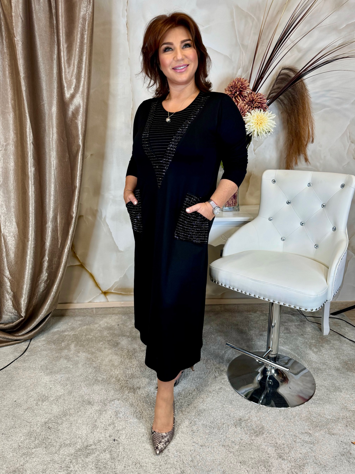 2024.10.06.Vékony kötésű fekete ruha ezüst kristályokkal